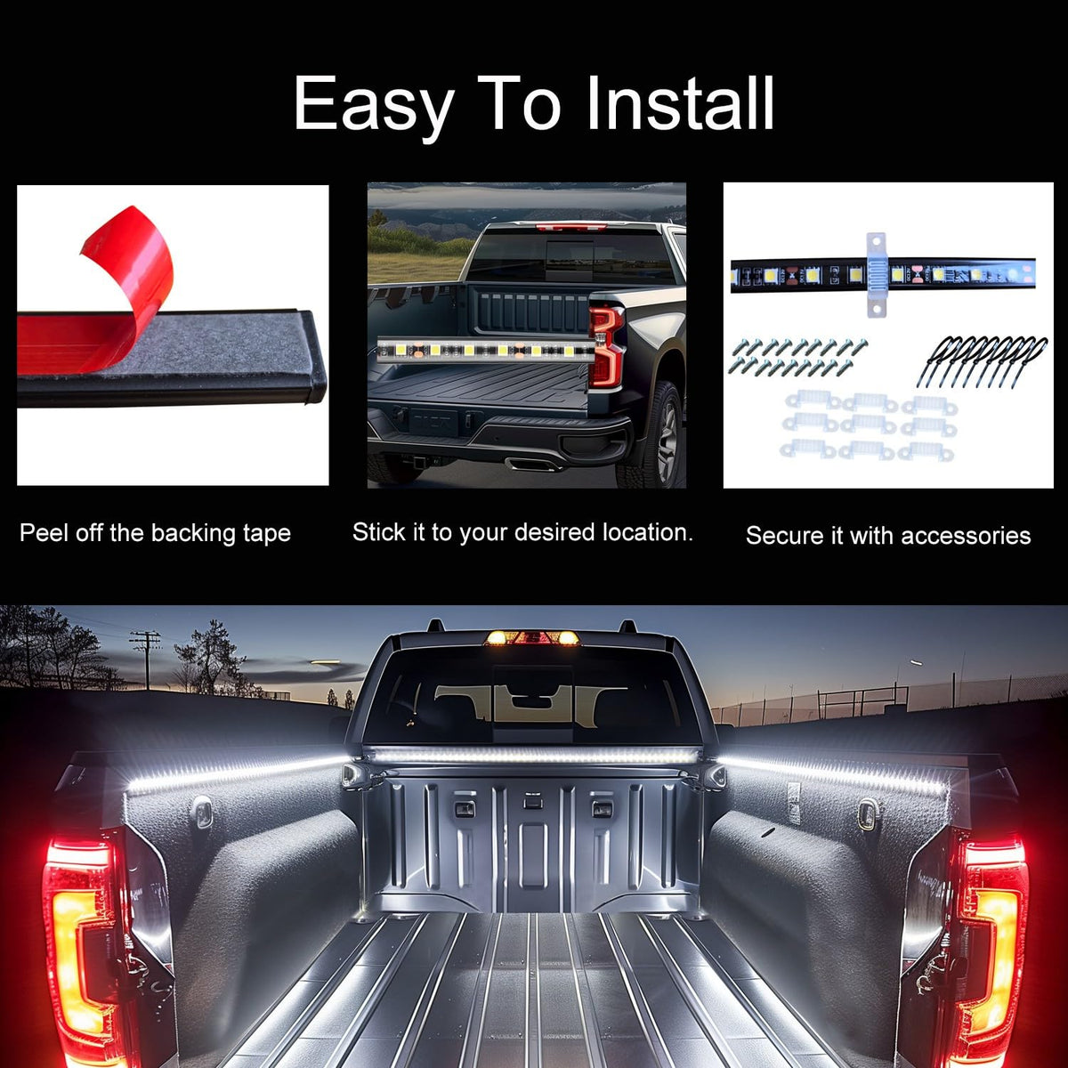 Enhance your outdoor visibility with the AUTUNEER LED Truck Bed Lights. Designed for truck owners who prioritize safety and convenience, these lights provide bright illumination for nighttime activities such as camping, loading, and unloading.