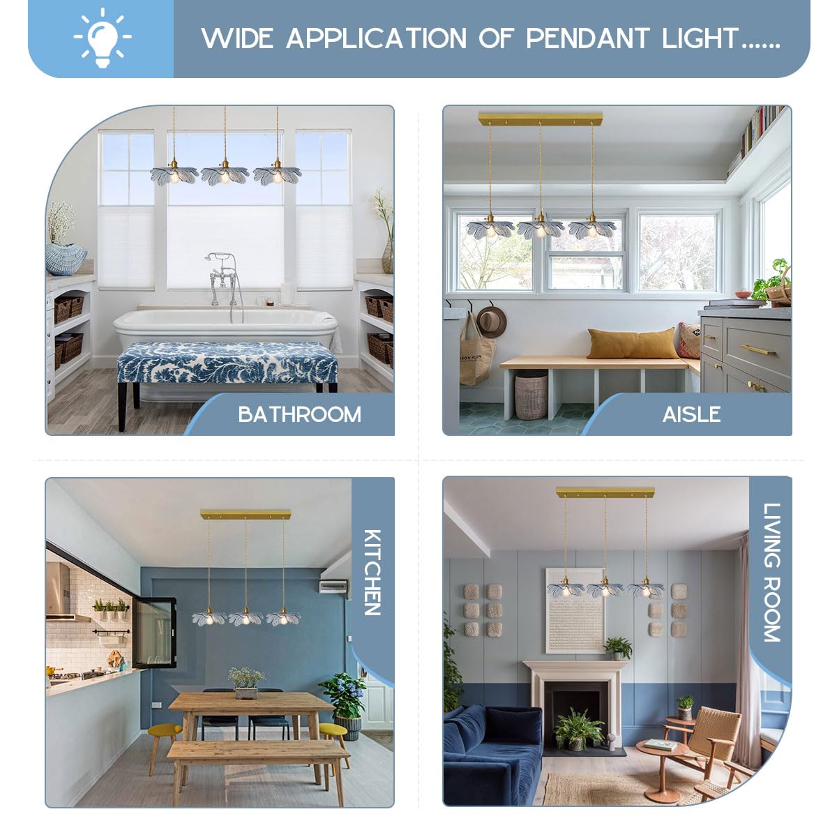 Auwieou 3 Light Pendant Lighting Blue Glass Pendant Light Brushed Brass Pendant Light Fixtures Vintage Farmhouse Chandelier 1-Li