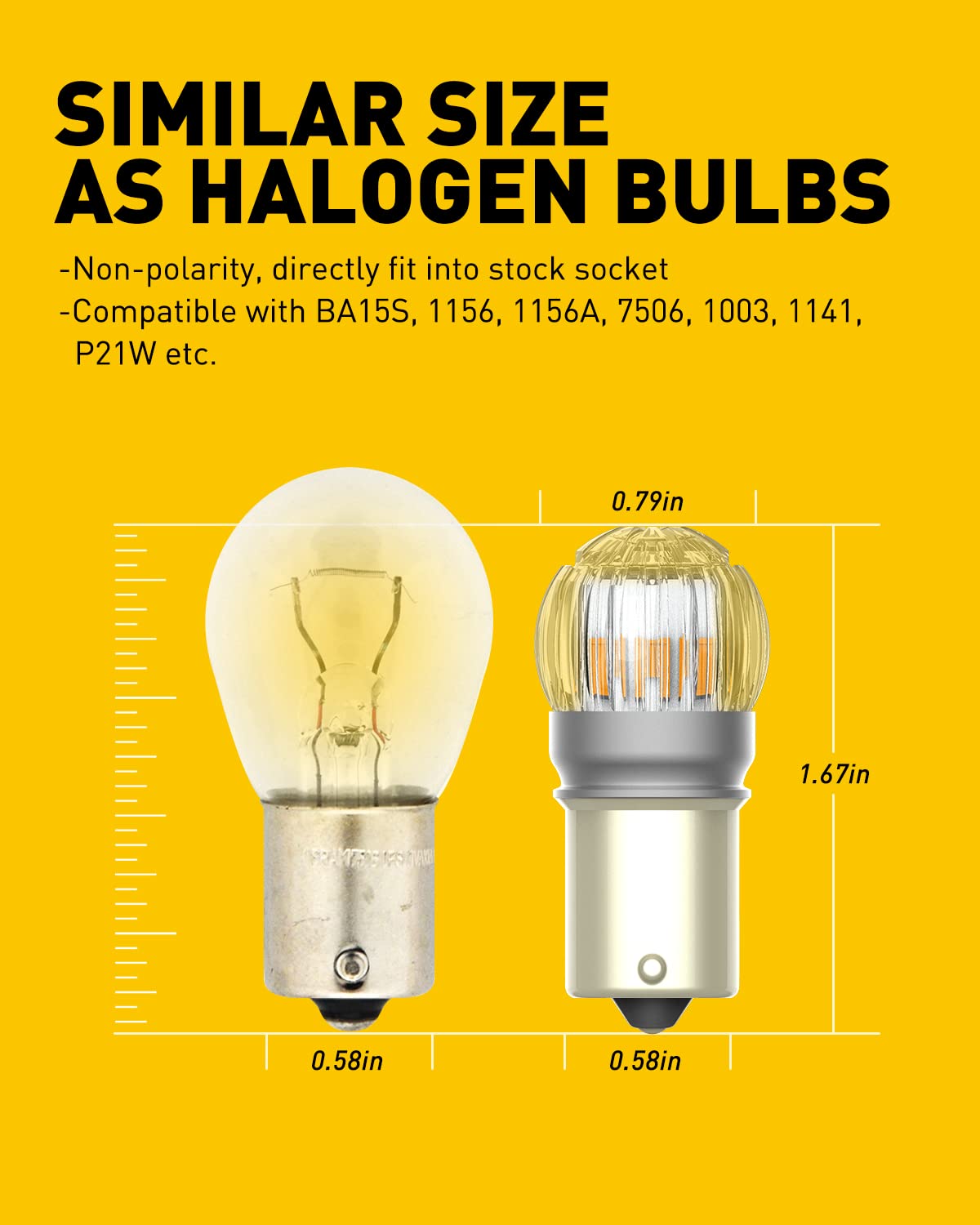Important Notice! 1156 bulbs and 1157 bulbs are completely different, please double check your vehicle owner manual or original bulb to confirm the correct bulb size you need before purchase