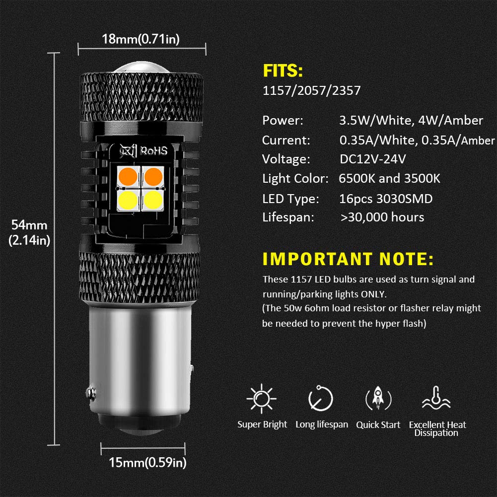 Auxlight 1157 2057 2357 7528 Bay15D P21/5W Switchback Led Bulbs 16Smd Chipsets Parking Lights / Daytime Running Lights / Drl And Turn Signal Lights With Projector Replacement, White/Amber (Pack Of 2)