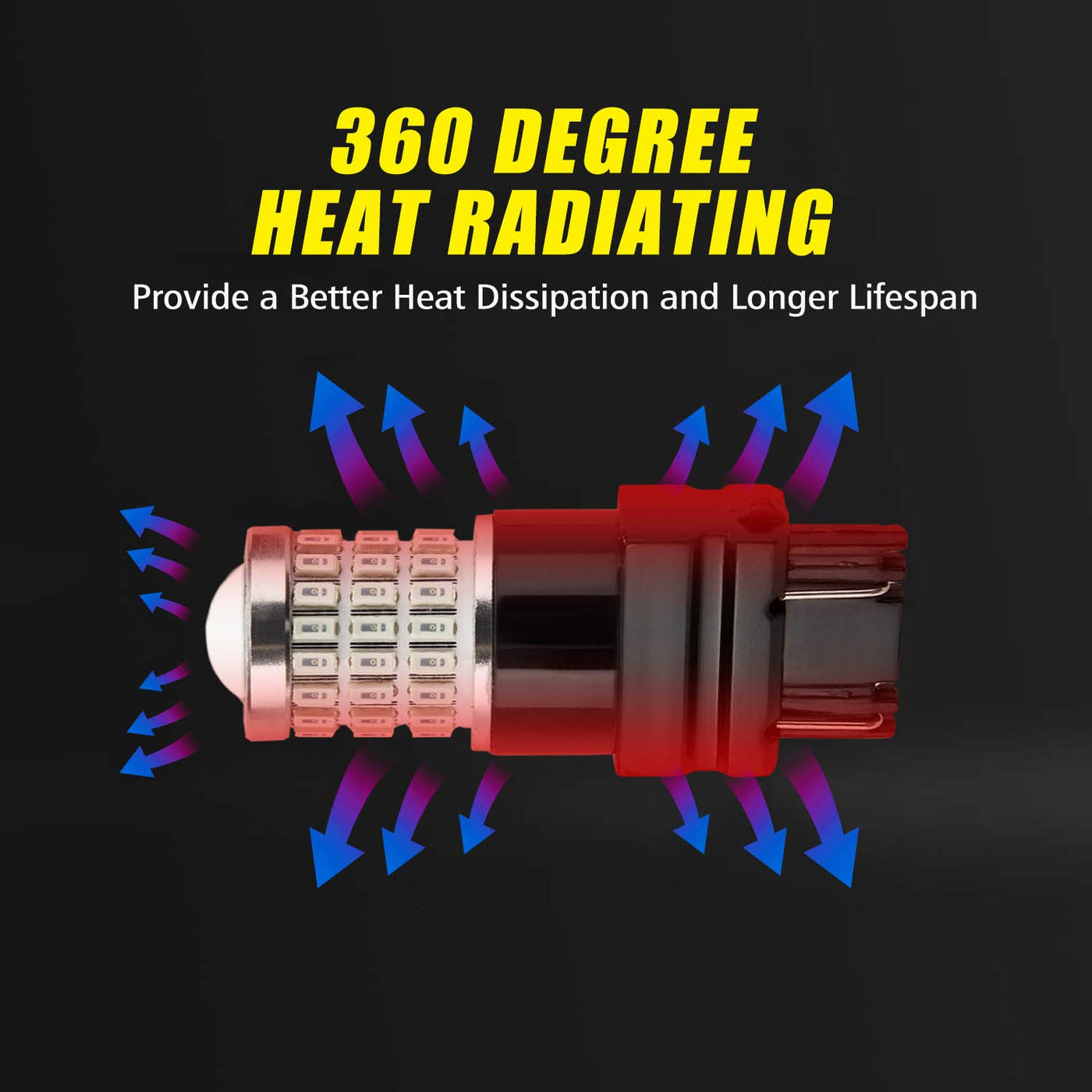 Auxlight 3157 3156 3057 4157 3157K Led Bulbs Brilliant Red, Ultra Bright 57-Smd Led Replacement For Brake/Tail Lights, Blinker Lights, Turn Signal/Parking Or Running Lights (Pack Of 2)