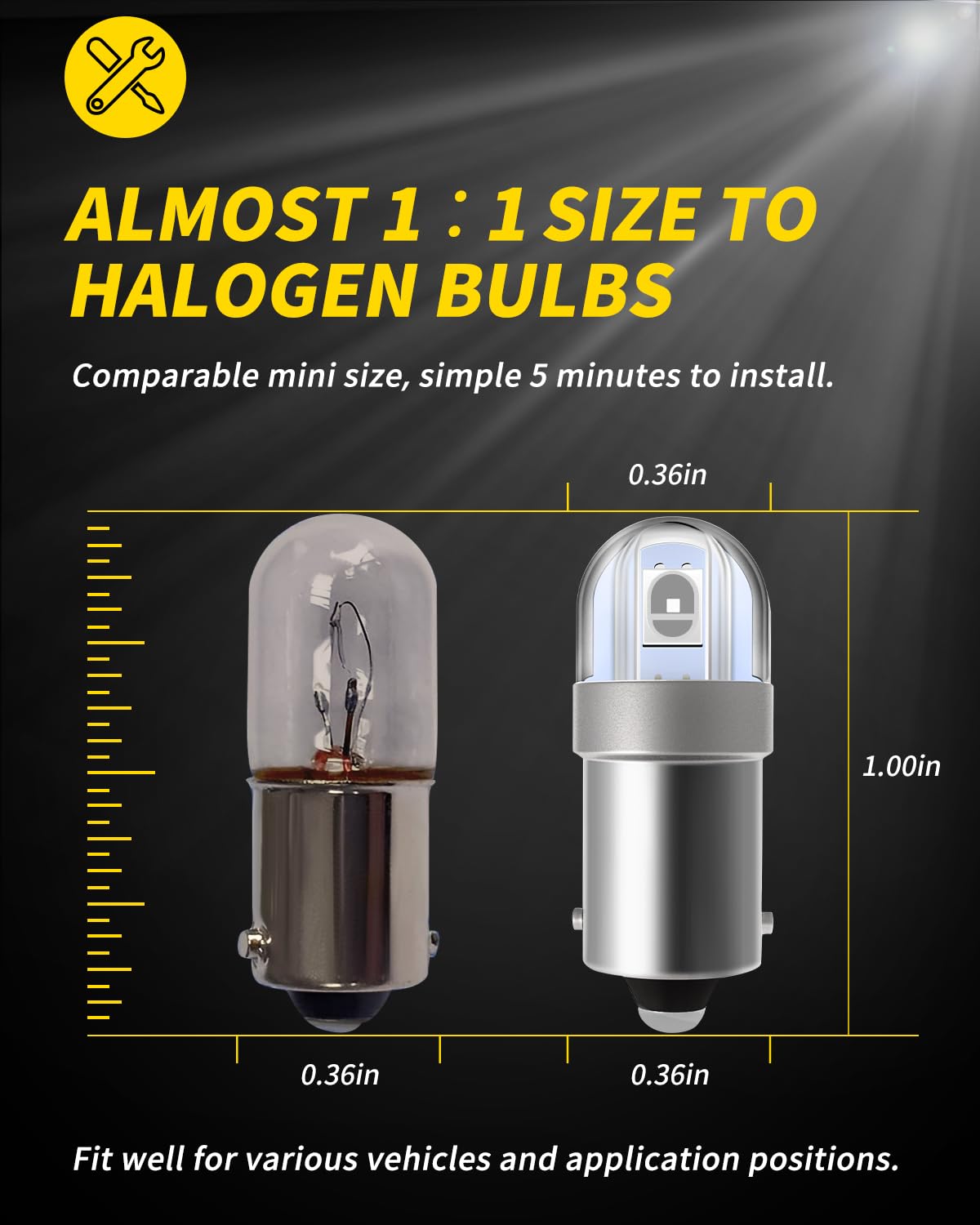 Q: Are the AUXLIGHT BA9S LED bulbs easy to install?A: Yes, the AUXLIGHT BA9S LED bulbs feature an all-in-one design that allows for plug-and-play installation. They are Canbus error-free, meaning you shouldn't encounter installation errors in 99% of vehicles. If the bulb doesn’t light up, simply flip it 180 degrees.