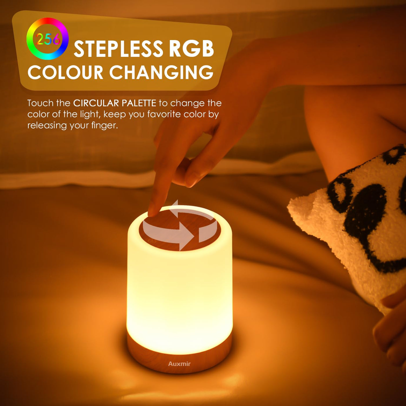 Auxmir Dimmable Touch Night Light for Kids, 11 RGB Colors, Portable Rechargeable Lamp, Classic Brown Touch Control for Nursery & Bedroom