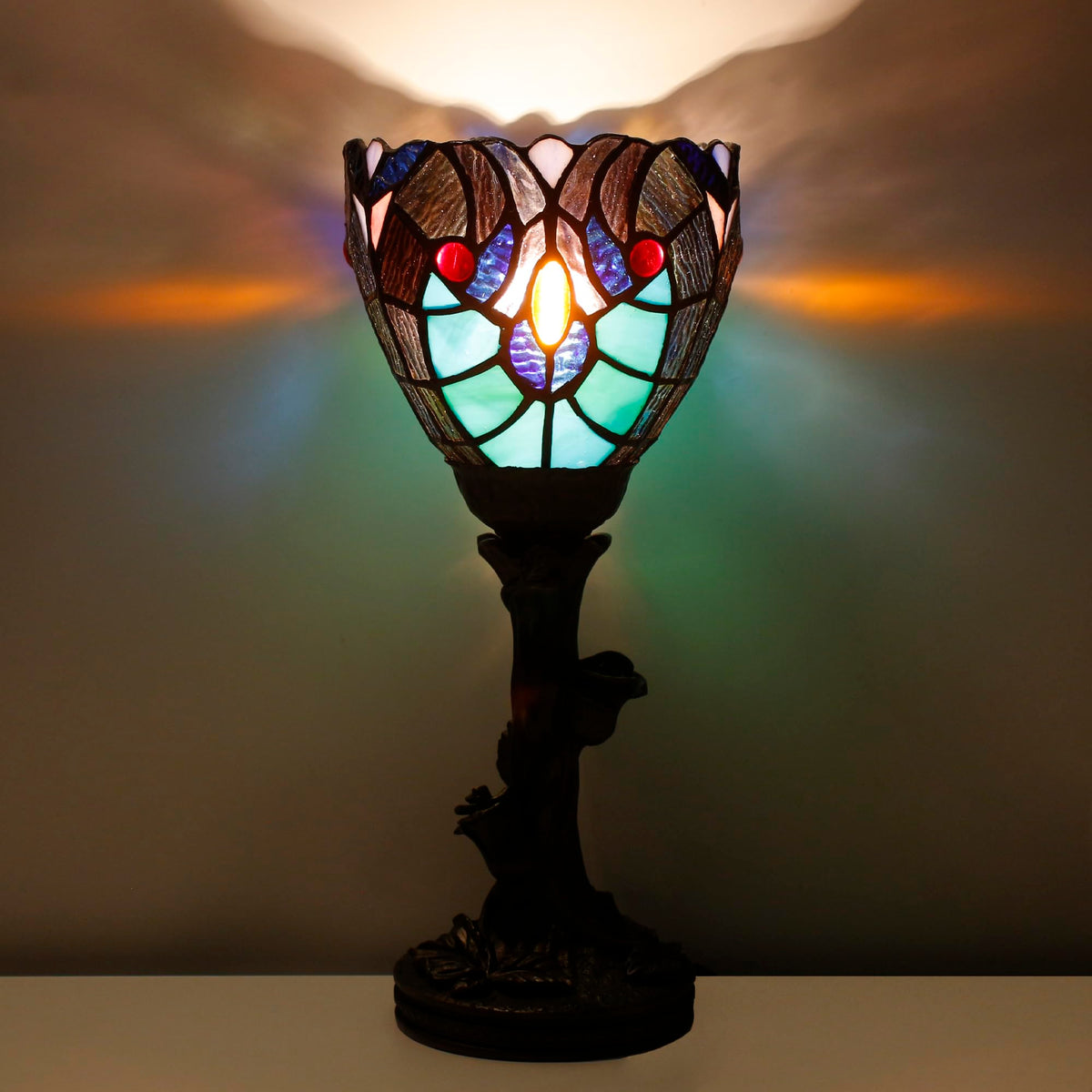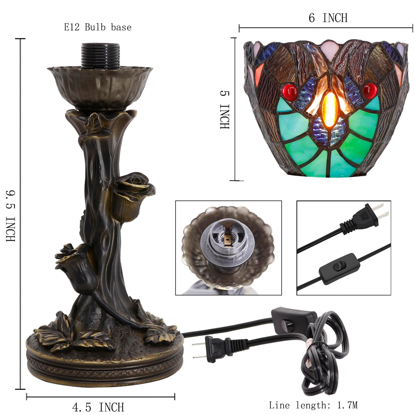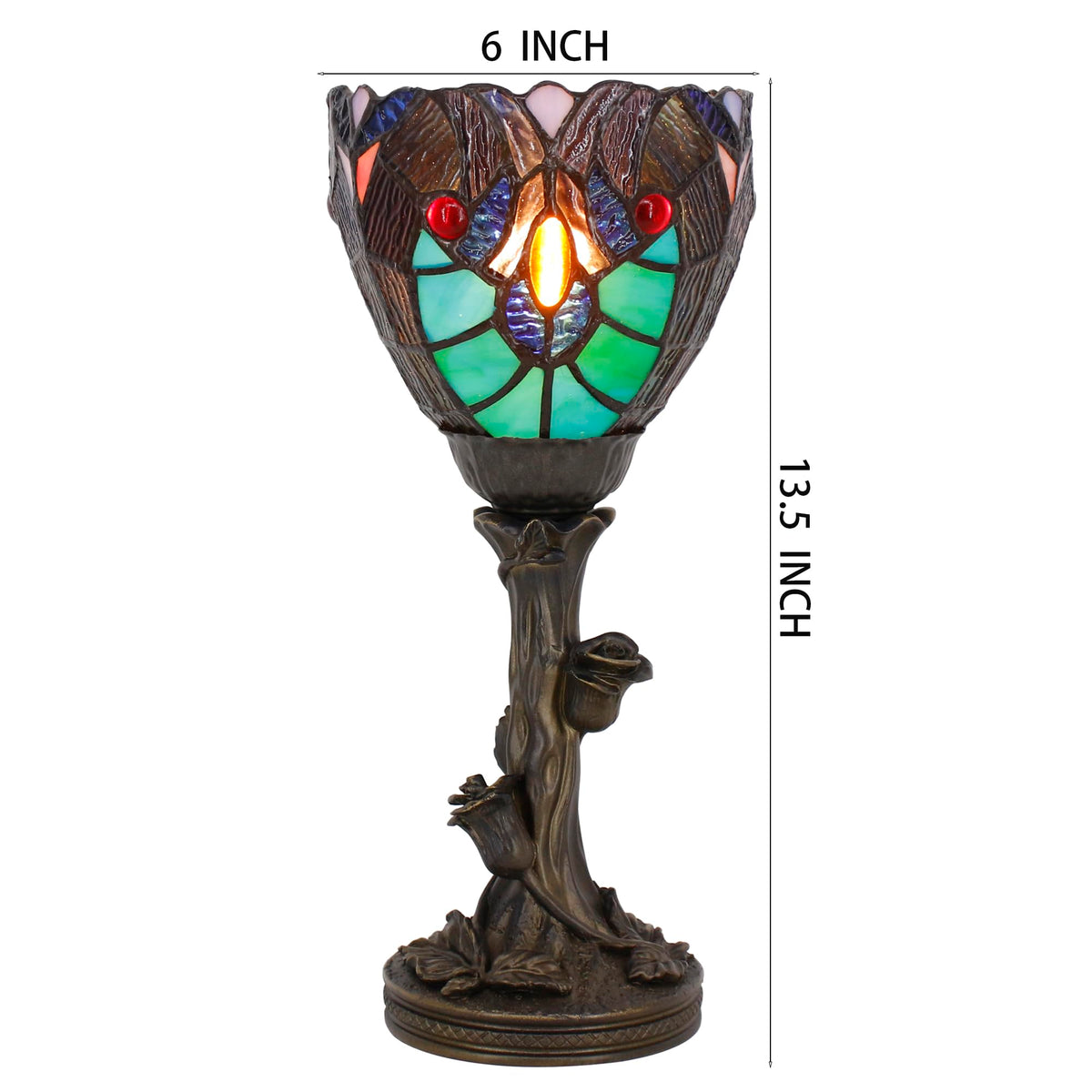 Small Tiffany Lamp Mini Desk Lamp Stained Glass Table Lamp W 6 H 13.5 Inch Lamp Information: The Small Lamp Total Height 13 Inch (33 Cm), The Lampshade Width 6 Inches (15.2 Cm),On/Off Switch On Cord With Ul Listed, Resin Base Finished Bronze, Simple Assembly. Bulb Suggestion: All Bulb Base In E12 Can Be Use, Led B11 Bulb Is Better, Max 60 W; Warm Light Bulb Can Get More Beautiful Color Light, (Bulb Not Included). Color Of Glass: Stained Glass Is Mix Color, Not Uniform Color , Each Two Lamps Will Different In Color. Oil On Surface: The New Lampshade Has Been Protected With Mineral Oil As Part Of The Finishing Process, Please Use A Soft Dry Cloth To Remove Any Excess Oil. Our Service: 24 Hours Services Everyday, No Matter What'S The Problem You Meet, You Can Get Help From Us At Any Time.