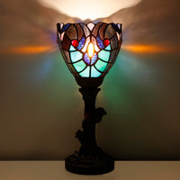 Avivadirect Small Tiffany Lamp Mini Stained Glass Table Lamp Green Liaison Accent Desk Uplight W6 H13.5 Inch Bronze Resin Base