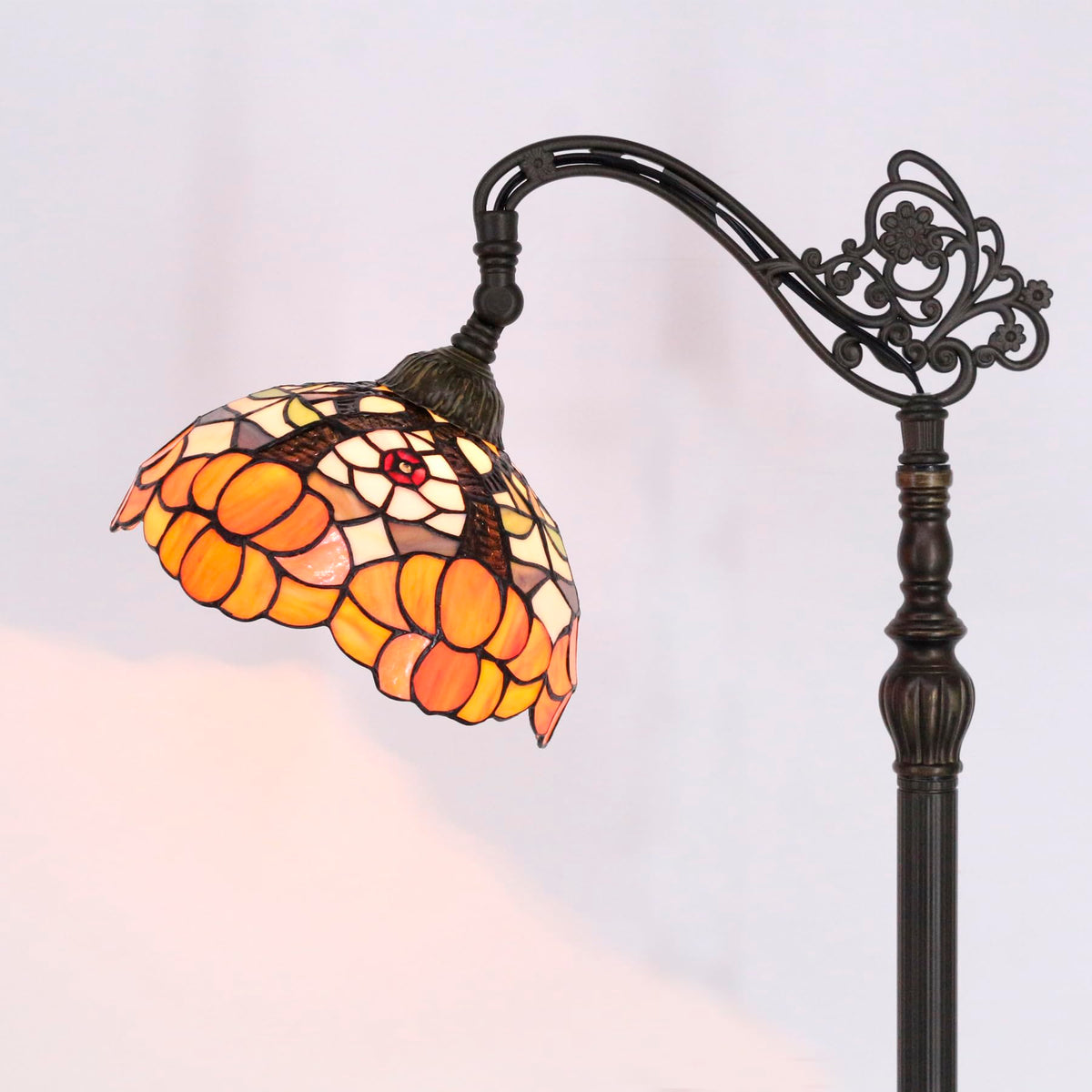 Tiffany Floor Lamp Stained Glass Reading Light 10X16X64 Inch,Angle Adjustable Lamp Information: The Tiffany Floor Lamp Height 64 Inch (162 Cm) Overall, The Lampshade Width 10 Inches (25 Cm), Footswitch On Cord With Ul Listed, Resin Base Bronze Finished, Simple Assembly. Bulb Suggestion: All Bulb Base In E26 Can Be Use, Led G45/A15/A19 Bulb Is Better, Max 100 W; Warm Light Bulb Can Get More Beautiful Color Light, 1 Light, ( Bulb Not Included). Color Of Glass: Stained Glass Is Mix Color, Not Uniform Color, Each Two Lamps Will Different In Color. Oil On Surface: The New Lampshade Has Been Protected With Mineral Oil As Part Of The Finishing Process, Please Use A Soft Dry Cloth To Remove Any Excess Oil. Our Service: 24 Hours Services Everyday, No Matter What'S The Problem You Meet, You Can Get Help From Us At Any Time.