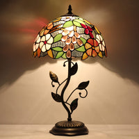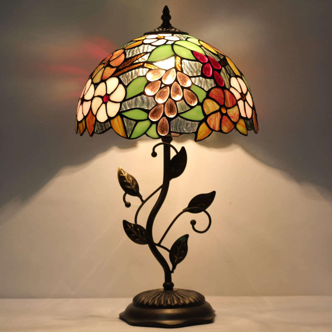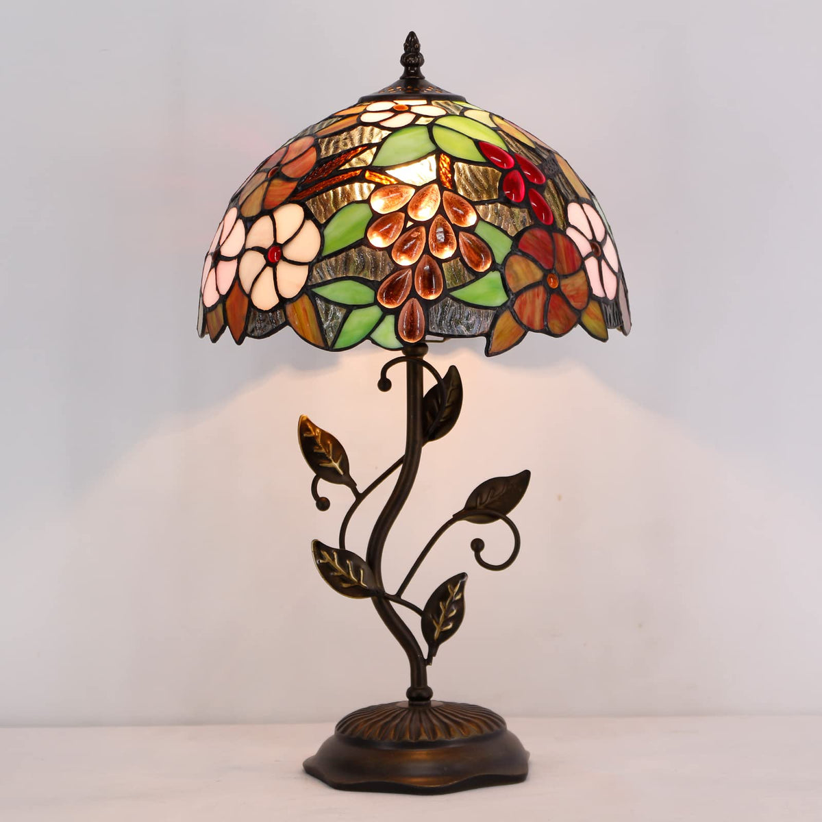 Avivadirect Tiffany Lamp Purple Grape Style Stained Glass Table Lamp Desk Bedside Reading Light 12X12X19 Inches With Metal Leaf