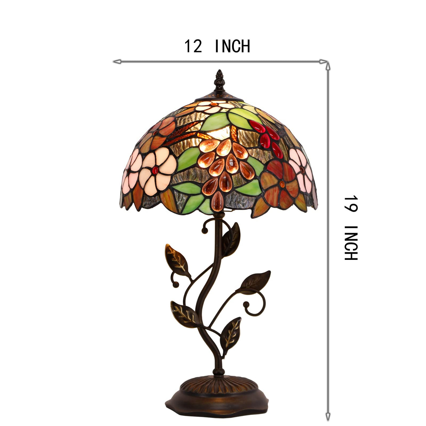 Q: What is the height and width of the AVIVADIRECT Tiffany Lamp?A: The AVIVADIRECT Tiffany Lamp has a total height of 19 inches (48 cm) and a lampshade width of 12 inches (30 cm), making it suitable for various settings.