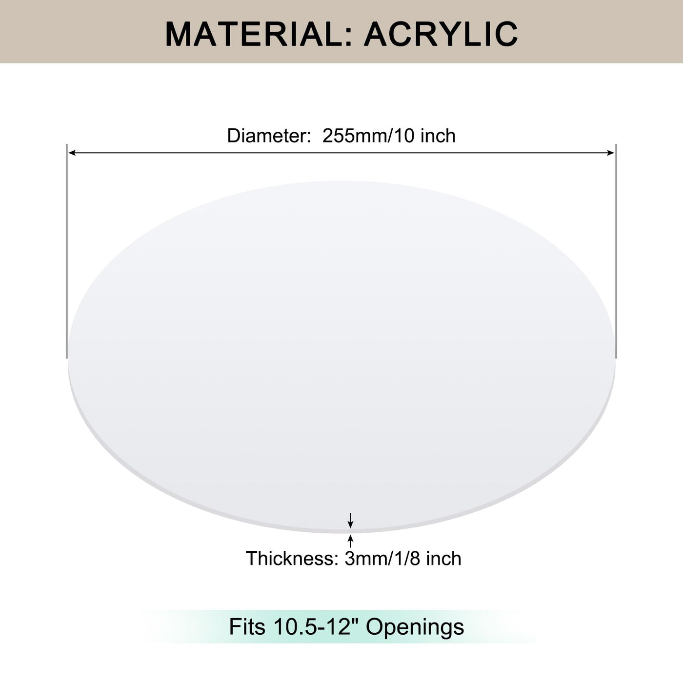 Specification&Nbsp;&Nbsp; Material: Acrylic&Nbsp;&Nbsp; Diameter: 255Mm/10 Inch Thickness: 3Mm / 1/8 Inch &Nbsp;Packing List: 1 X Lampshade Diffuser Advantages Of The Matte Acrylic Lampshade Diffuser Durability: Our Lampshade Diffuser Is Made From A Durable, Heat-Resistant Material That Can Withstand The Heat Generated By The Lamp. This Ensures Its Longevity And Reliability.&Nbsp;&Nbsp; Enhanced Visual Comfort: By Softening And Diffusing The Light, This Diffuser Improves Visual Comfort By Reducing Eyestrain. It Creates A More Soothing And Comfortable Lighting Environment, Making It Perfect For Reading, Working, Or Relaxing.&Nbsp;&Nbsp; Easy Installation: Simply Place The Acrylic Board On The Top Or Bottom Of The Lampshade. It Offers Dual Use, Allowing You To Mount It On Top Of Your Table Lamp Shade, Floor Lamp Shade, Or Fit It On The Top Or Bottom Of Most Hanging Drum-Style Pendant&Nbsp;&Nbsp;&Nbsp;&Nbsp;&Nbsp;&Nbsp;&Nbsp; Light Fixtures.&Nbsp;&Nbsp; Application: Made From A Creamy Matte Acrylic Sheet, This Product Is Great For Eliminating Glare From Cfl Or Led Bulbs, Creating More Comfortable, Eye-Friendly Lighting. You Can Also Use It To Direct Light Downward For Accent Or Improved Reading Light.&Nbsp;&Nbsp;&Nbsp;&Nbsp;&Nbsp;&Nbsp;&Nbsp; It Provides Soft And Evenly Distributed Light, Creating A Pleasant And Comfortable Reading Atmosphere In Your Living Space. Note:&Nbsp;&Nbsp; Please Tear Off The Transparent Protective Film Of The Product Before Installation.