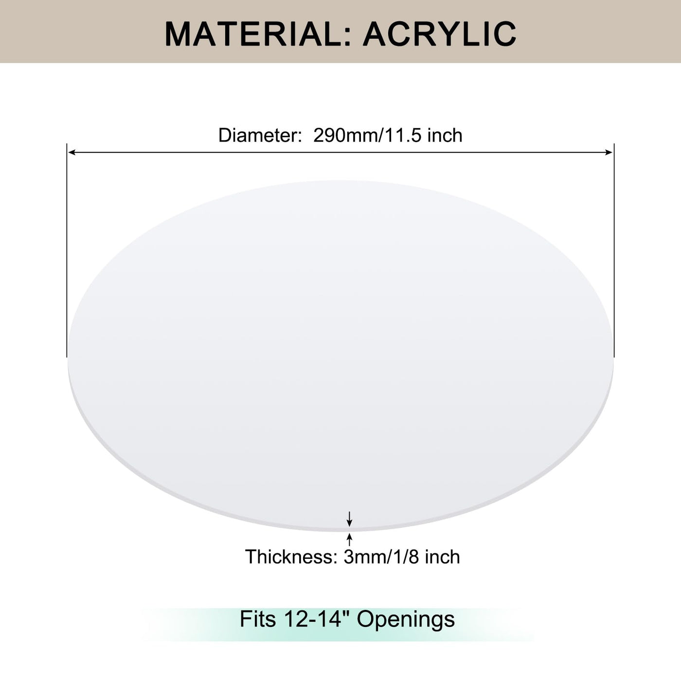 Specification&Nbsp;&Nbsp; Material: Acrylic&Nbsp;&Nbsp; Diameter: 290Mm/11.4 Inch Thickness: 3Mm / 1/8 Inch &Nbsp;Packing List: 1 X Lampshade Diffuser Advantages Of The Matte Acrylic Lampshade Diffuser Durability: Our Lampshade Diffuser Is Made From A Durable, Heat-Resistant Material That Can Withstand The Heat Generated By The Lamp. This Ensures Its Longevity And Reliability.&Nbsp;&Nbsp; Enhanced Visual Comfort: By Softening And Diffusing The Light, This Diffuser Improves Visual Comfort By Reducing Eyestrain. It Creates A More Soothing And Comfortable Lighting Environment, Making It Perfect For Reading, Working, Or Relaxing.&Nbsp;&Nbsp; Easy Installation: Simply Place The Acrylic Board On The Top Or Bottom Of The Lampshade. It Offers Dual Use, Allowing You To Mount It On Top Of Your Table Lamp Shade, Floor Lamp Shade, Or Fit It On The Top Or Bottom Of Most Hanging Drum-Style Pendant&Nbsp;&Nbsp;&Nbsp;&Nbsp;&Nbsp;&Nbsp;&Nbsp; Light Fixtures.&Nbsp;&Nbsp; Application: Made From A Creamy Matte Acrylic Sheet, This Product Is Great For Eliminating Glare From Cfl Or Led Bulbs, Creating More Comfortable, Eye-Friendly Lighting. You Can Also Use It To Direct Light Downward For Accent Or Improved Reading Light.&Nbsp;&Nbsp;&Nbsp;&Nbsp;&Nbsp;&Nbsp;&Nbsp; It Provides Soft And Evenly Distributed Light, Creating A Pleasant And Comfortable Reading Atmosphere In Your Living Space. Note:&Nbsp;&Nbsp; Please Tear Off The Transparent Protective Film Of The Product Before Installation.