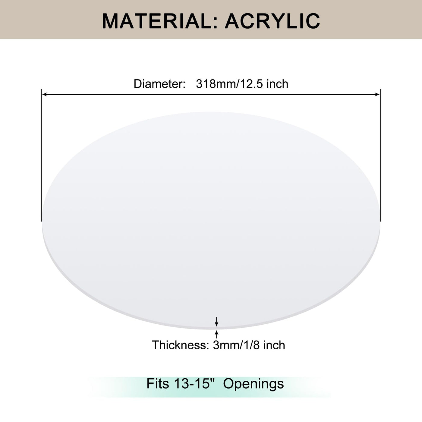 Specification&Nbsp;&Nbsp; Material: Acrylic&Nbsp;&Nbsp; Diameter: 318Mm/12.5 Inch Thickness: 3Mm / 1/8 Inch &Nbsp;Packing List: 1 X Lampshade Diffuser Advantages Of The Matte Acrylic Lampshade Diffuser Durability: Our Lampshade Diffuser Is Made From A Durable, Heat-Resistant Material That Can Withstand The Heat Generated By The Lamp. This Ensures Its Longevity And Reliability.&Nbsp;&Nbsp; Enhanced Visual Comfort: By Softening And Diffusing The Light, This Diffuser Improves Visual Comfort By Reducing Eyestrain. It Creates A More Soothing And Comfortable Lighting Environment, Making It Perfect For Reading, Working, Or Relaxing.&Nbsp;&Nbsp; Easy Installation: Simply Place The Acrylic Board On The Top Or Bottom Of The Lampshade. It Offers Dual Use, Allowing You To Mount It On Top Of Your Table Lamp Shade, Floor Lamp Shade, Or Fit It On The Top Or Bottom Of Most Hanging Drum-Style Pendant&Nbsp;&Nbsp;&Nbsp;&Nbsp;&Nbsp;&Nbsp;&Nbsp; Light Fixtures.&Nbsp;&Nbsp; Application: Made From A Creamy Matte Acrylic Sheet, This Product Is Great For Eliminating Glare From Cfl Or Led Bulbs, Creating More Comfortable, Eye-Friendly Lighting. You Can Also Use It To Direct Light Downward For Accent Or Improved Reading Light.&Nbsp;&Nbsp;&Nbsp;&Nbsp;&Nbsp;&Nbsp;&Nbsp; It Provides Soft And Evenly Distributed Light, Creating A Pleasant And Comfortable Reading Atmosphere In Your Living Space. Note:&Nbsp;&Nbsp; Please Tear Off The Transparent Protective Film Of The Product Before Installation.