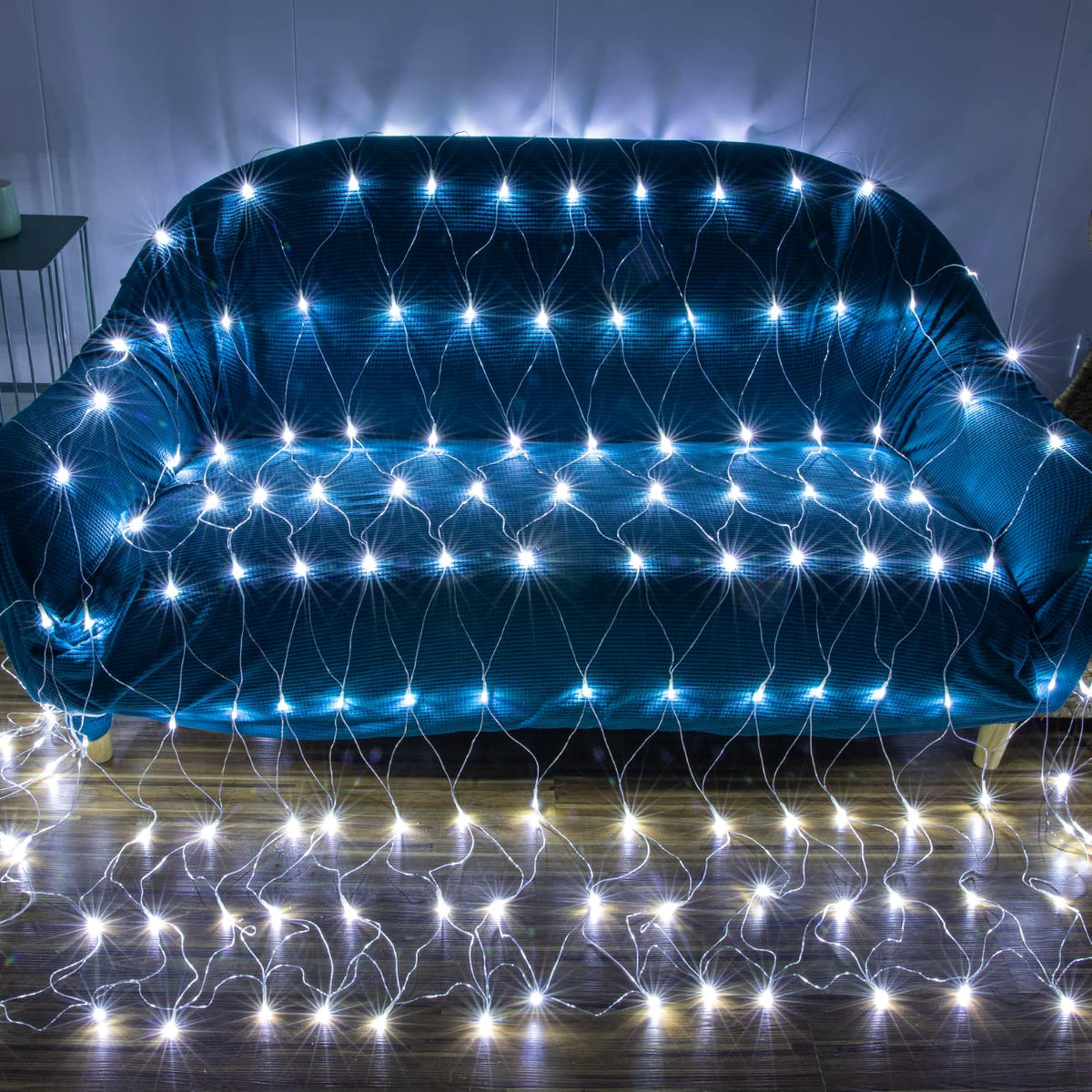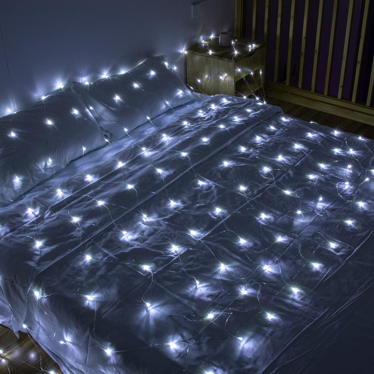 Awq 360 Led 13.1Ft X 6.6Ft String Lights Net Mesh Lights Christmas Net Lights 8 Modes For Christmas Wedding Party Home Garden Lawn Bushes Bedroom Indoor Outdoor Decor (White)