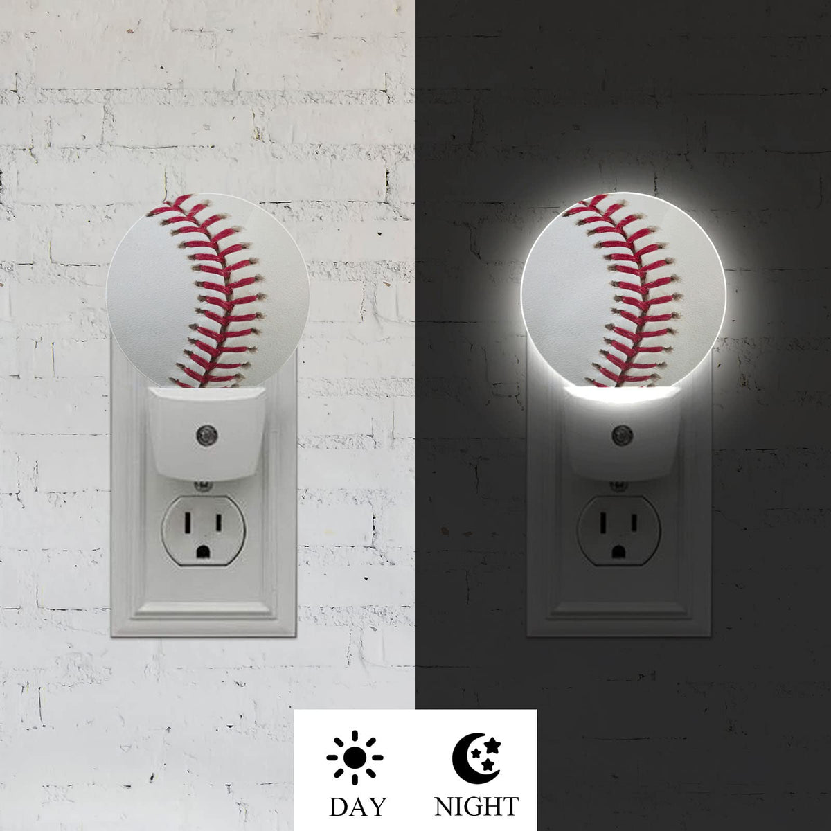 Baseball Stitching LED Night Light Ball Game Sports American Dusk to Dawn Round Lamp Auto Sensor for Bathroom Hallway Living Room Do you often bump into things when you get up late at night because you can't see clearly? You definitely need a plug-in LED night light. They give off just the right amount of light to help you see your way in the dark. The night light lamp allows you to get up in the night, get some water, go to the bathroom, and then go back to bed when you're half asleep. This LED sensor night light is lit by brightness. The photo conductance resistance in the night light detects the external light. When the external environment becomes dark, the photo conductance resistor controls the opening of the circuit, and then the night lighting starts to turn on. When the external environment lights up to the critical point of the photo conductance resistance, the circuit automatically cuts off, and then the night light goes out to save power. The round night light is a great gift for Daughter, son, grandparents, friends, family and relatives in Halloween, Thanksgiving, Christmas, New Year, Valentine's Day, Easter, St Patrick's Day, Father's Day and Mother's Day. This product is not a toy. For safe use, only plug into the outlet exposed to the wall, ventilate the device, and do not touch the bedspread or other materials. Do not use extension cords.