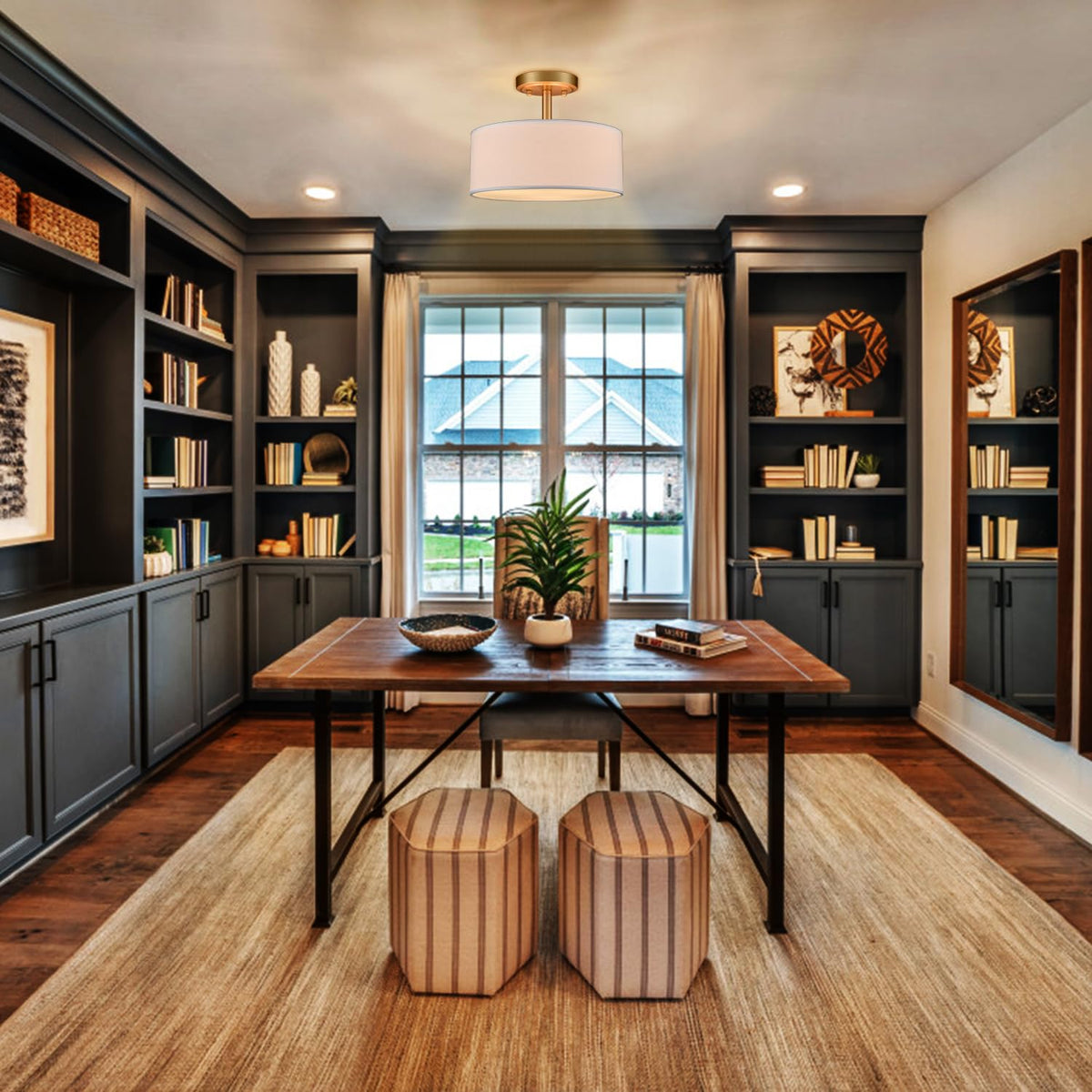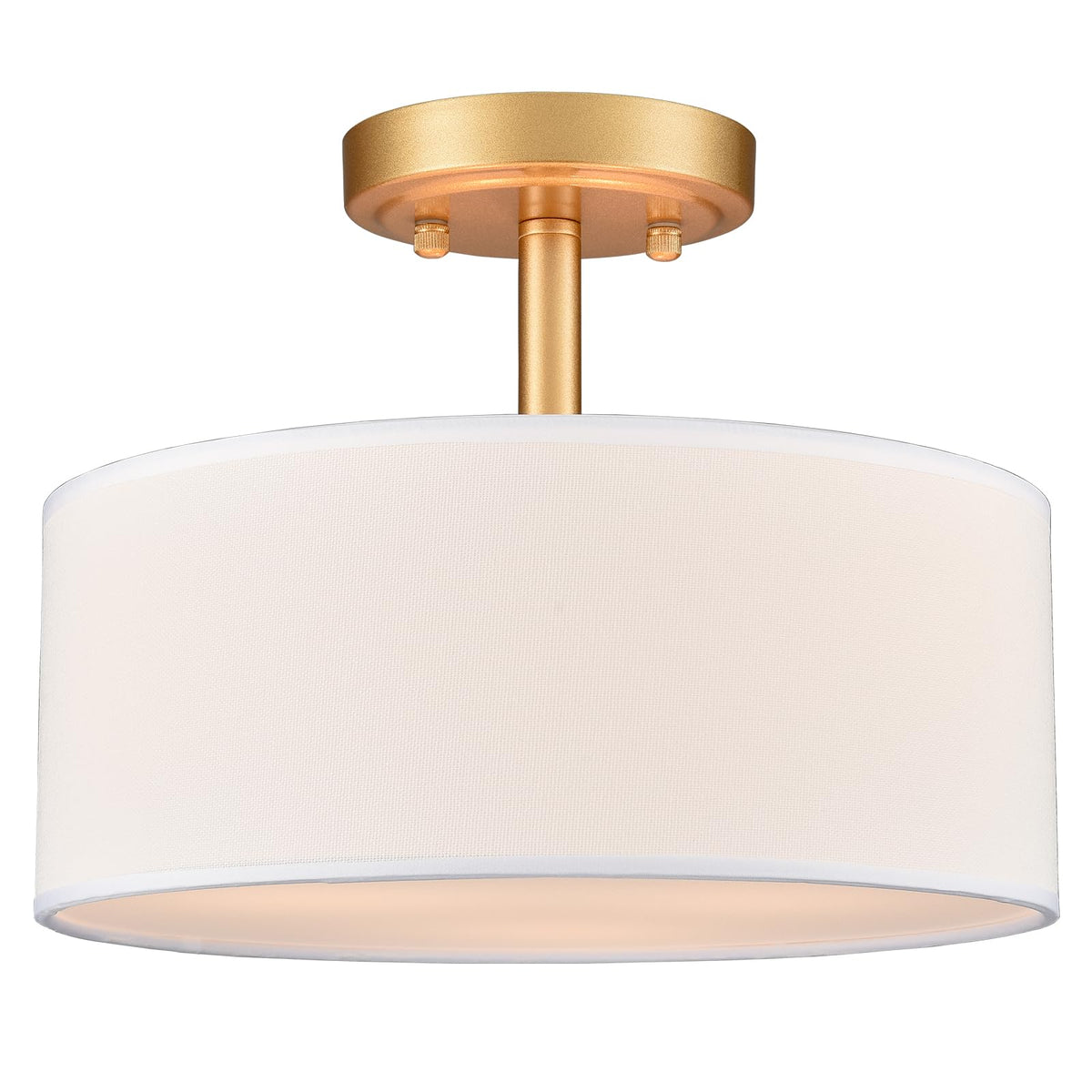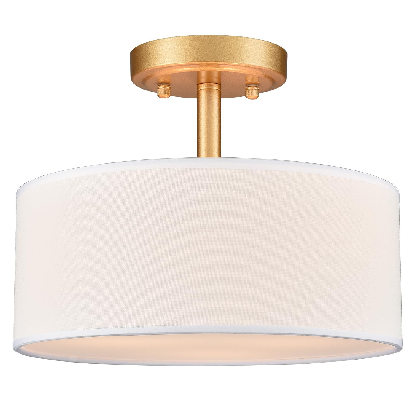 This stylish ceiling light features a beautiful spray-discomfort-reducingted gold finish that adds a touch of sophistication to your home decor. It is complemented by a beige linen drum shade, which diffuses light evenly, ensuring a warm and inviting atmosphere. With a robust construction made from well-made metal, this fixture is built to last and withstand daily use.