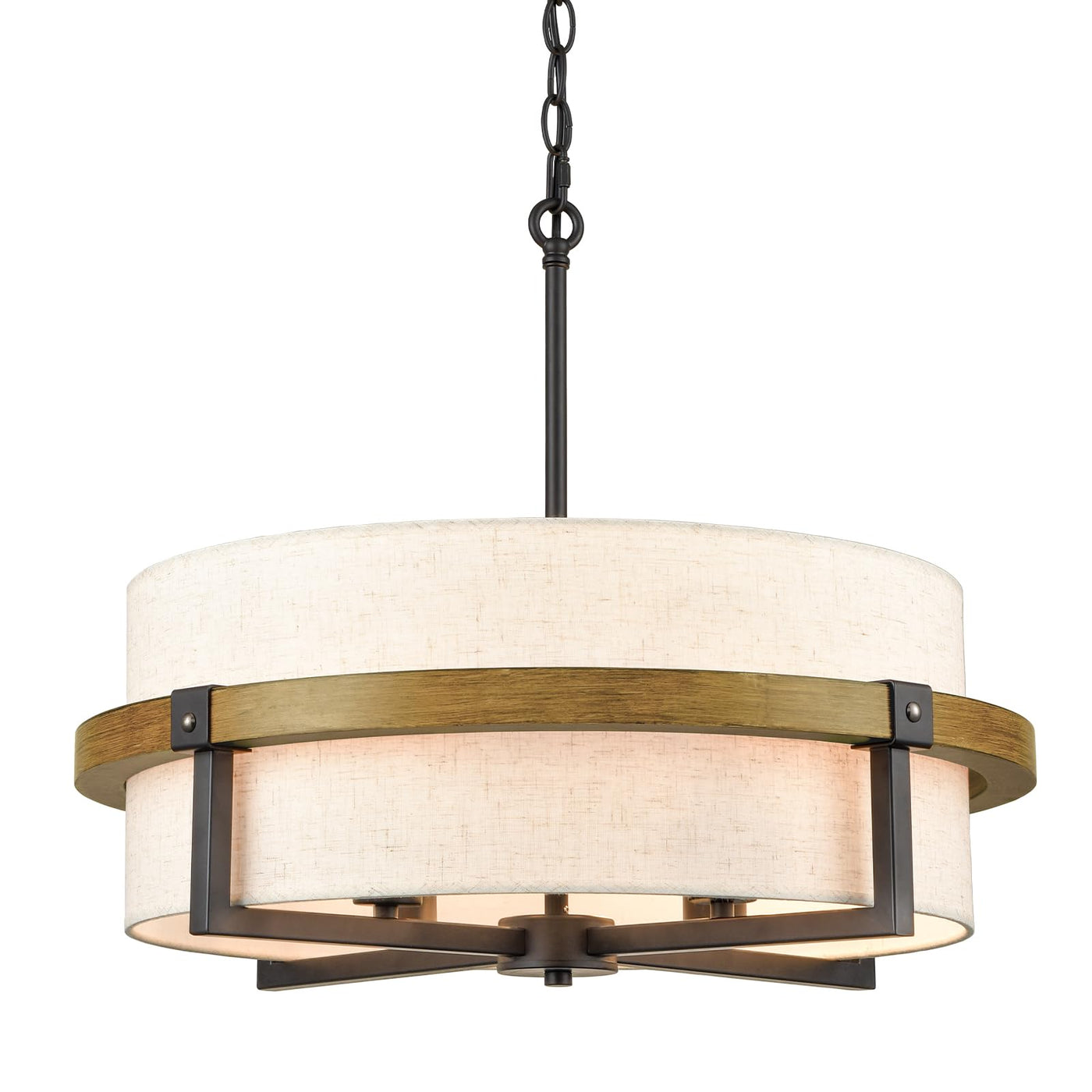 Axiland Rustic 4-Light Drum Chandelier With Off-White Fabric Shade For Dining Room