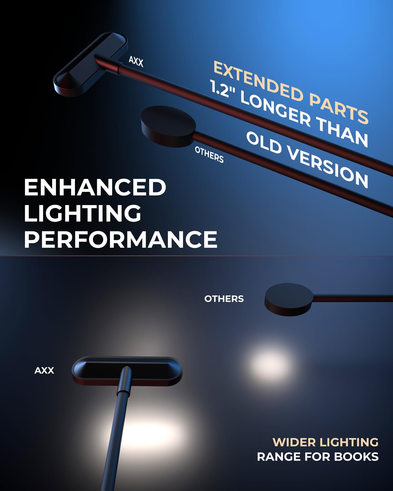 - **Ergonomic Design**: The longer gooseneck design allows you to reach over larger surfaces, while the horizontal LED panel eliminates dark corners, protecting your eyes while you read without disturbing those around you.