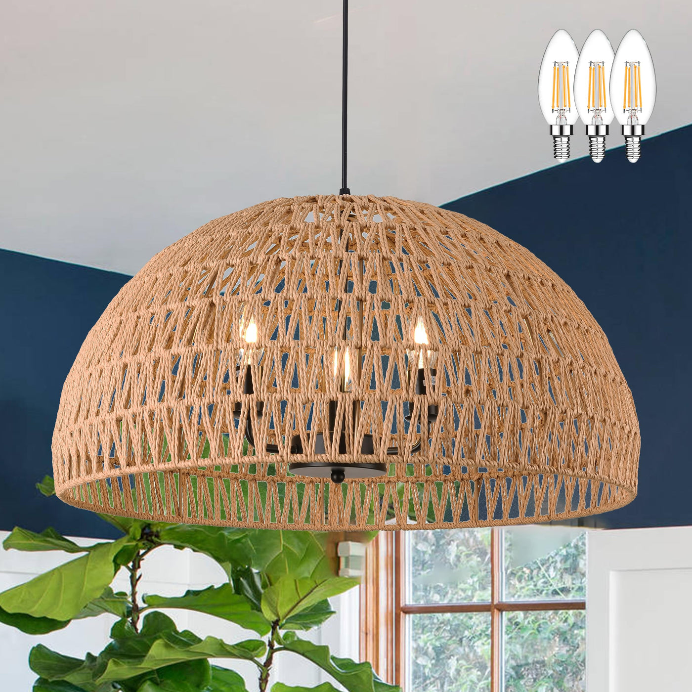 Ayshwilldec 24" Brown Woven Pendant Light - Boho Chandelier For Dining Room, Living Room, Kitchen