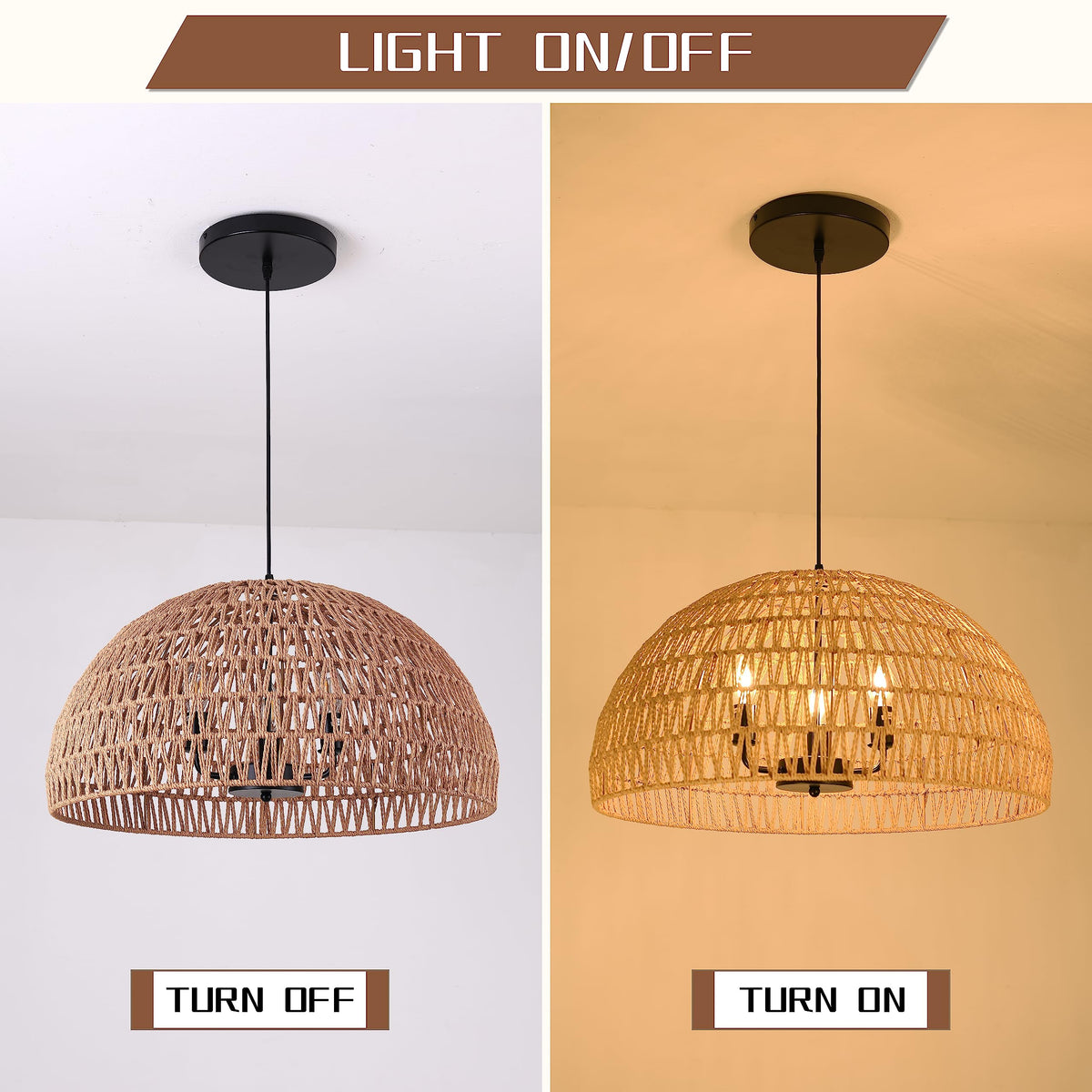 - **Unique Design**: Crafted with high-quality hemp rope, this brown woven chandelier creates a soothing light effect that adds a touch of elegance and coziness to any room. The dome shape offers a distinctive aesthetic, making it a perfect centerpiece for various decor styles.