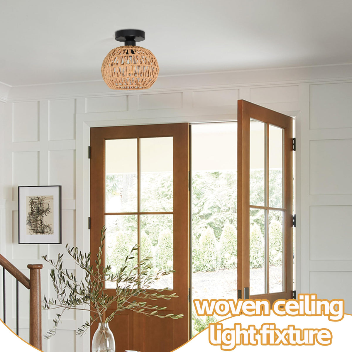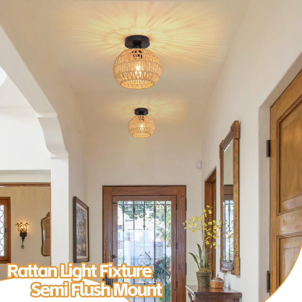 Ayshwilldec 8.7 Inch Mini Rattan Ceiling Light Fixture - Boho Wicker Flush Mount With Hand Woven Shade For Hallway Bedroom