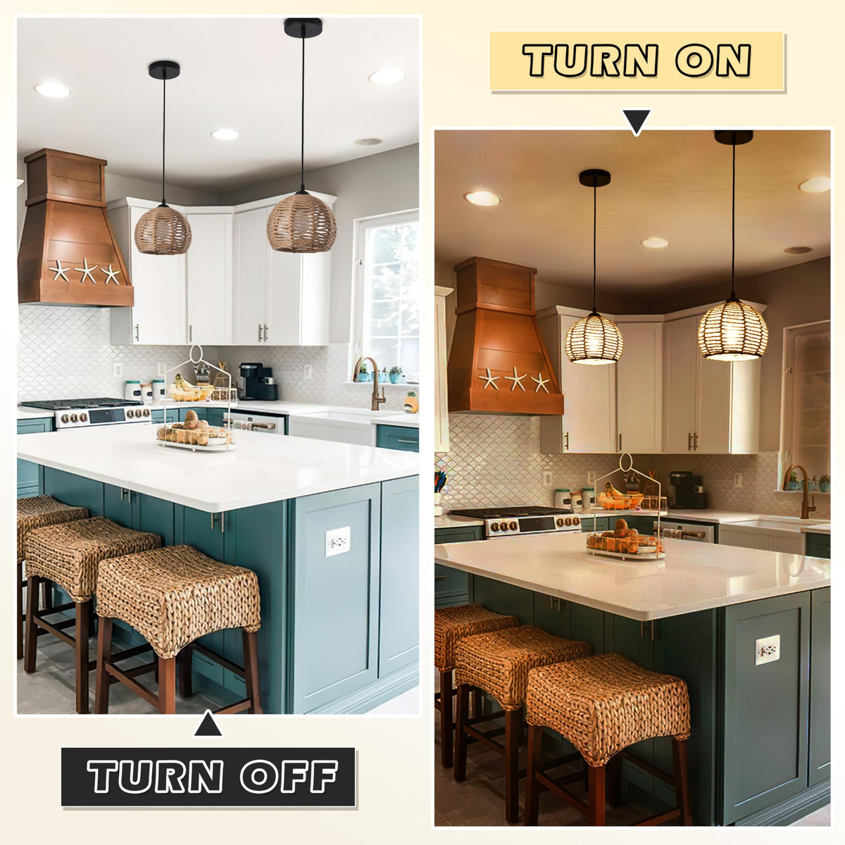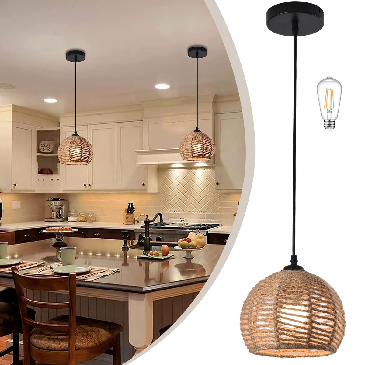 [Design & Application] Hand-woven hemp rope lamp fixture provides a natural coastal charm, perfect for kitchens, dining rooms, cafes, and more.