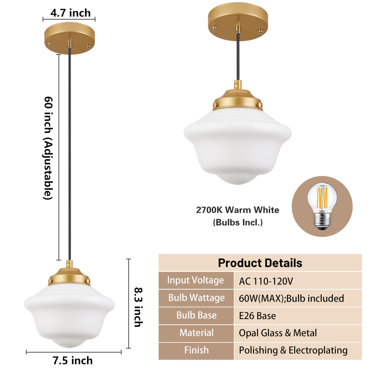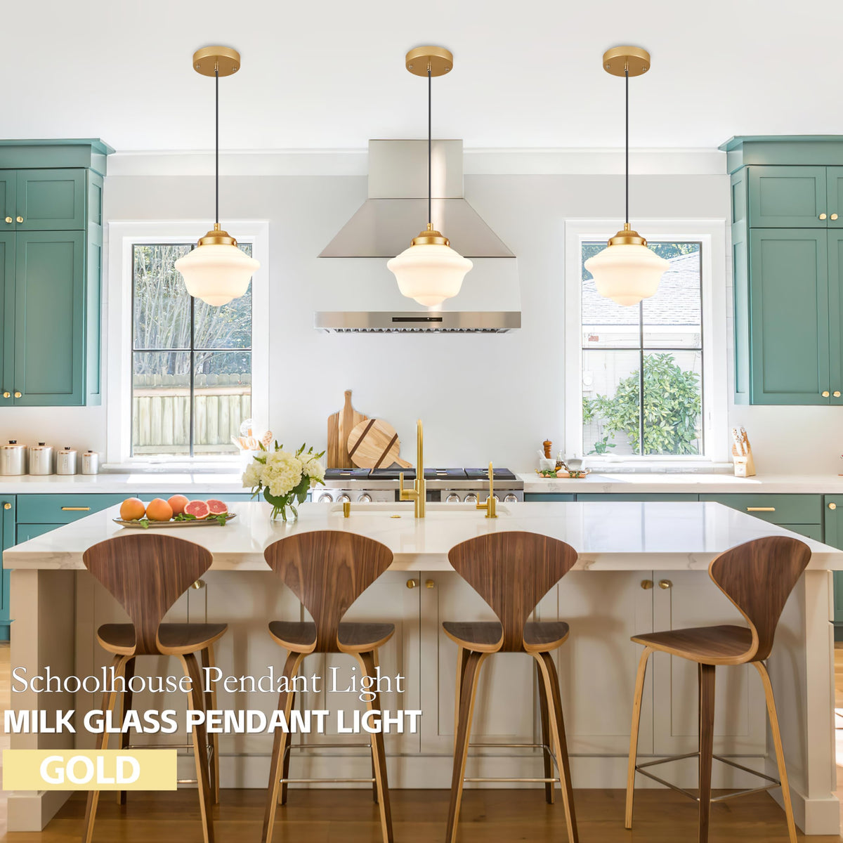 Ayshwilldec Gold Schoolhouse Light Fixture 8'' Milk Glass Light Fixture Mid Century Pendant Light Milk Glass Pendant Light Schoo