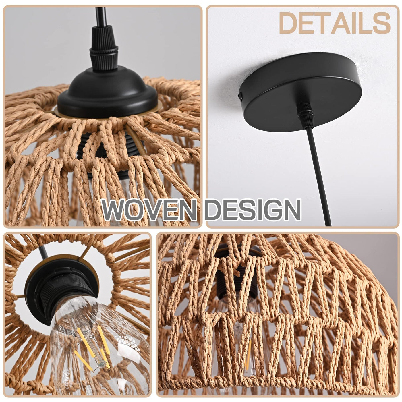 Stylish Design: The retro woven dome design of this chandelier exudes sophistication and charm. Its natural color complements various decors, making it an ideal addition to both formal dining areas and cozy leisure spaces.