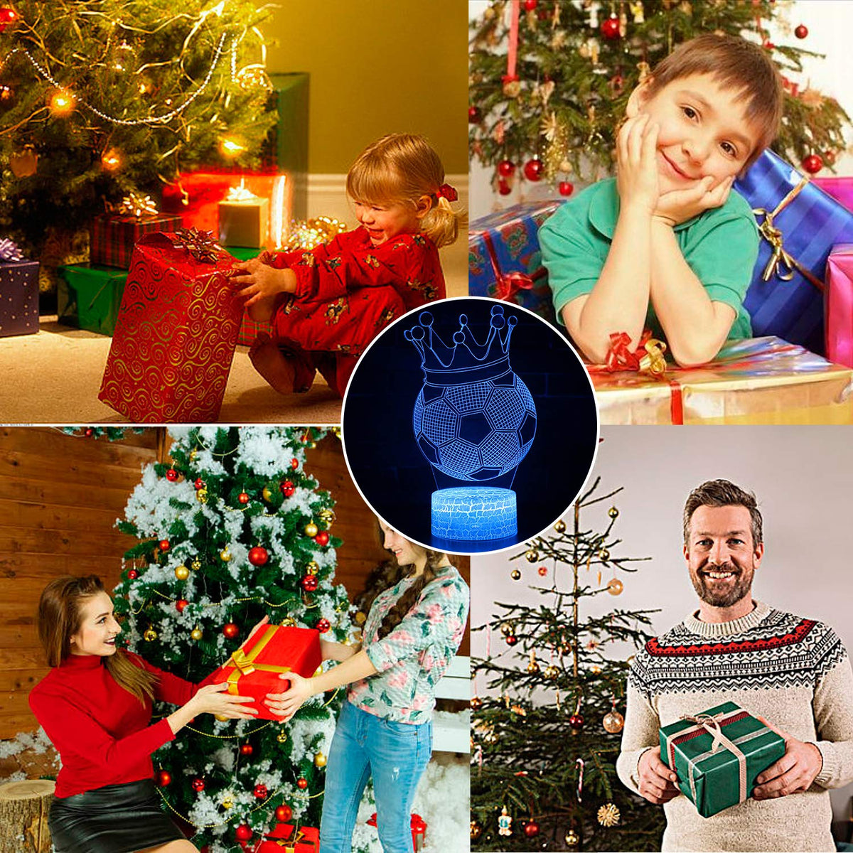 Azalco 3D Illusion Crown Soccer Night Lamp, 16 Color Change, Touch White Baseteenager Christmas Gifts Xmas Gift Soccer Lover Rem