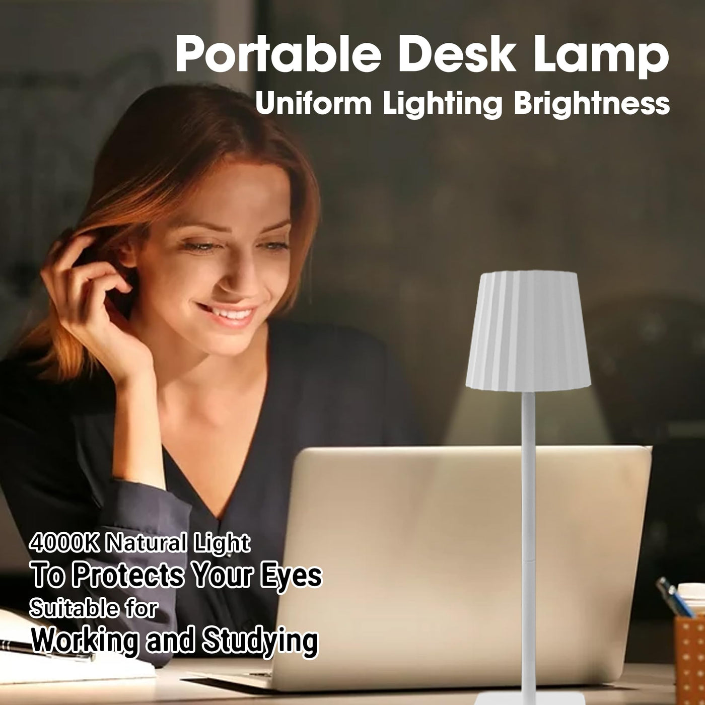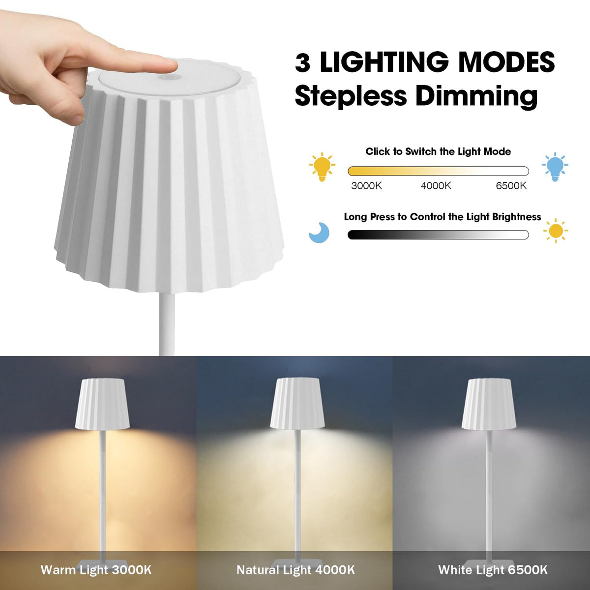 Cordless Table Lamp: Enjoy the freedom of a cordless design with a modern minimalist style and a unique pleated lamp shade. This lamp is perfect for creating a warm and bright atmosphere in any space.