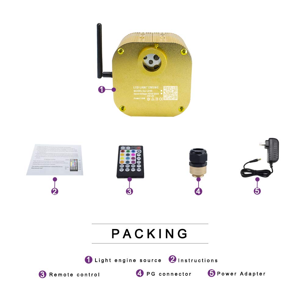 Azimom Fiber Optic Light Features The Worlds Most Advanced Led Fiber Optic Technology Can Achieve Twinkle Voice Control Color Change And Other Functions Providing A More Wonderful Visual Experience. Techincal Specification Input Voltage:Ac86-265V/Dc12V Power:32W Color:Rgbw Led:Rgbw Led Net Weight: 723G Light Source Device Size: L150*W150*H90Mm Fiber Head Inner Diameter:30Mm Light Body Material:Aluminum Remoter Dimension: L85? W52 ? H7Mm Lifetime: 50 000 Hours Warranty:2 Years