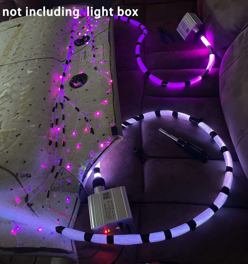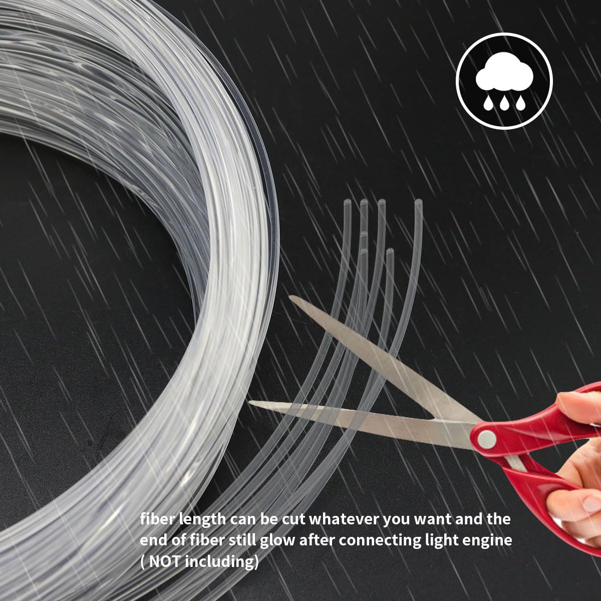 Q: What light sources are compatible with the AZIMOM fiber optic cable?A: The fiber optic cable is suitable for use with most light engine drivers, enabling you to create stunning lighting effects for home decorations, art exhibitions, and car illumination.