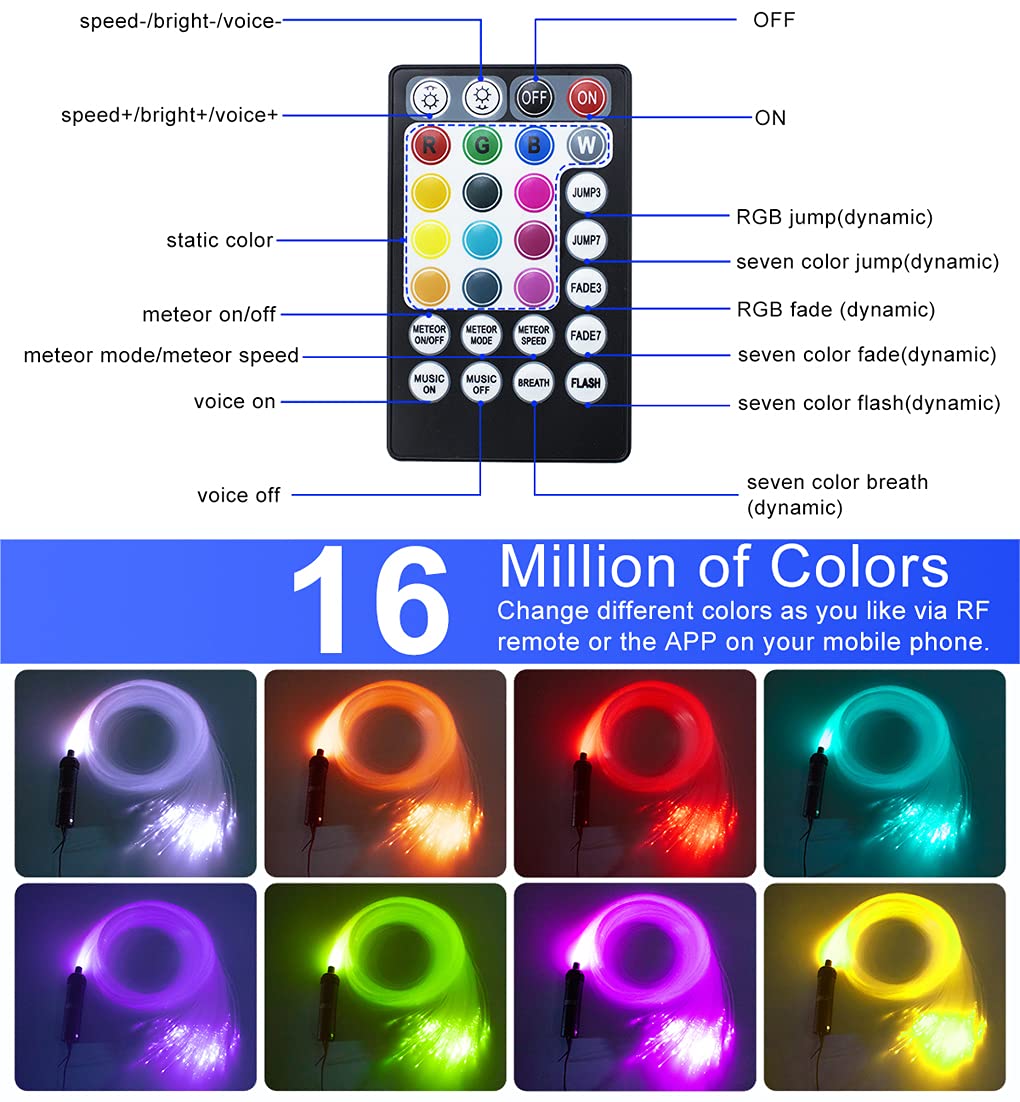 - **Wide Application:** Ideal for a variety of settings, this fiber optic light kit can be used in cars, KTVs, saunas, living rooms, bedrooms, kitchens, and more. Create stunning displays for parties, festivals, or everyday decor with ease.