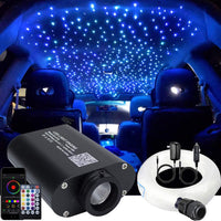 The updated version 16w musical fiber optic star ceiling light kits add APP and Bluetooth control supporting Android and iOS system, providing more star light effects and colors changing including Static mode, Dynamic mode,music sound control More Details: 1. The 28-key RF remote (NOT include batteries) controls RGBW lighting modes and adjusts brightness in multiple colors. 2. premium end grow PMMA optic fiber cable,bright great optical conductivity and flexible to easily design the shape what you need. 3. we will add car use plug to satisfy your needs whatever you install in car or not,and our shop always commit to giving our customers a good shopping experience 4. Fiber optic light is controlled by cellphone (Android / iPhone), just download the APP and turn on Bluetooth. Change color/mode/speed/brightness conveniently Technical Specification: Diameter of each fiber: 0.75mm end glow pmma fiber optic cable Length of each fiber cable : 6.5ft(2m) High quality end grow PMMA optic fiber cable LED chip: RGBW LED (CREE chip) Remote Contral mode:MUSIC CONTROL,STATIC COLOR(Mix white,Red,Green,Blue,Yellow,Ice blue,Pink),JUMP 3,JUMP 7,FADE 3,FADE 7,FLASH,BREATH Power: 16W Input voltage: DC12V/AC86-265V Remote: RF 28 key remote,APP, Bluetooth control Fiber Working Temperature: -58° - 167° Engine Material: Aluminum shell Fiber head inner diameter:20mm Engine size: L115×W80×H37mm Lifetime: 50,000 hours Warranty: 2 years Product including: 1x 16w RGBW light engine(Bluetooth version) 1x 28 Key remote controller 1x 450pcs *0.75mm*2m fiber optic cable 1x User Manual 1x car cigarette cord 1x Power adapter