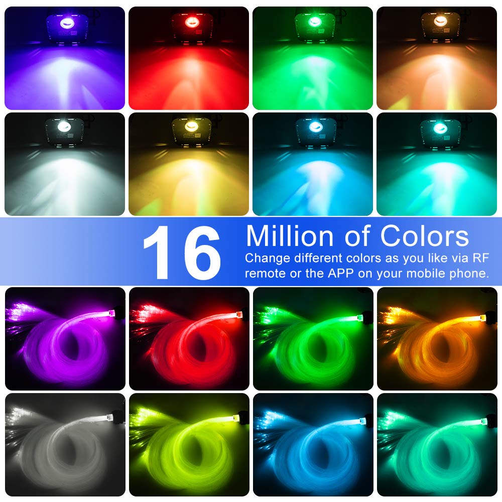 AZIMOM Fiber Optic Starlight Kits, 50W, 800pcs, 0.03in x 13.1ft, Sound Activated, Bluetooth Control, Black, Model Q