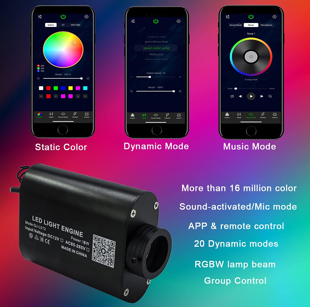 • **Premium Quality Materials**: Crafted with flexible PMMA end glow fiber optic cable and a high-performance 16W LED engine, this lighting kit ensures brilliant optical conductivity and durability. Each fiber measures 0.75mm in diameter and extends 6.5ft, allowing for creative designs.