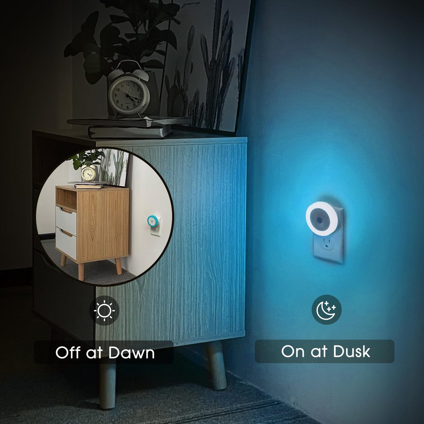 Azure Blue Night Light, Night Lights Plug Into Wall [2Pack], Nightlight With Light Sensors, Led Night Light For Kids Room, Baby Night Light, Bathroom Night Light, Stair Lights, Hallway Light Night Lights Plug Into Wall: Our Plug In Night Lights Have A Compact Size And Unique Night Light Plug Design To Avoid Obstructing Other Outlets. Nightlight With Light Sensors: These Night-Lights Have A Built-In Sensitive Light Sensor. Our Nightlight Will Automatically Turns On At Dusk And Off At Dawn, And This Led Night Light Will Change Brightness According To The Surrounding Light Intensity. Energy Efficient And Safe: Led Night Light Consumes Only 0.6W, Saving Both The Environment And Your Wallet. Unlike Other Cheap Plastic Night Light, We Use 100% Fire-Resistant Abs. Perfect Baby Night Light For Kids Room, Bathroom Night Light And Stair Lights. Perfect Brightness: Our Plug In Night Light Provides Just The Right Amount Of Azure Blue Light (60 Lumens) For You To Walk Around Your House Without Turning Your Main Lights On. Not Too Bright, Not Too Dim. 100% Satisfied: The Package Includes 2 Pack Night Lights, Each Having More Than 50000+ Hours Lifespan. If You Are Not Satisfied With Our Nightlights For Whatever Reason, Well Give You A Replacement Or Full Refund.