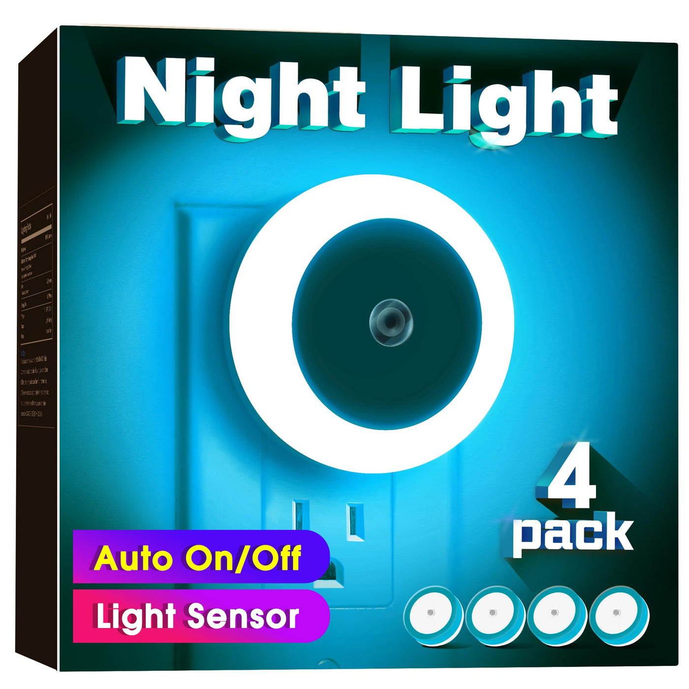 Azure Blue Night Light, Night Lights Plug into Wall [2Pack], Nightlight with Light Sensors, LED Night Light for Kids Room, Baby Night Light, Bathroom Night Light, Stair Lights, Hallway Light NIGHT LIGHTS PLUG INTO WALL: Our plug in night lights have a compact size and unique night light plug design to avoid obstructing other outlets. NIGHTLIGHT WITH LIGHT SENSORS: These night-lights have a built-in sensitive light sensor. Our nightlight will automatically turns on at dusk and off at dawn, and this led night light will change brightness according to the surrounding light intensity. ENERGY EFFICIENT AND SAFE: LED night light consumes only 0.6W, saving both the environment and your wallet. Unlike other cheap plastic night light, we use 100% fire-resistant ABS. Perfect baby night light for kids room, bathroom night light and stair lights. PERFECT BRIGHTNESS: Our plug in night light provides just the right amount of azure blue light (60 lumens) for you to walk around your house without turning your main lights on. Not too bright, not too dim. 100% SATISFIED: The package includes 2 pack night lights, each having more than 50000+ hours lifespan. If you are not satisfied with our nightlights for whatever reason, well give you a replacement or full refund.