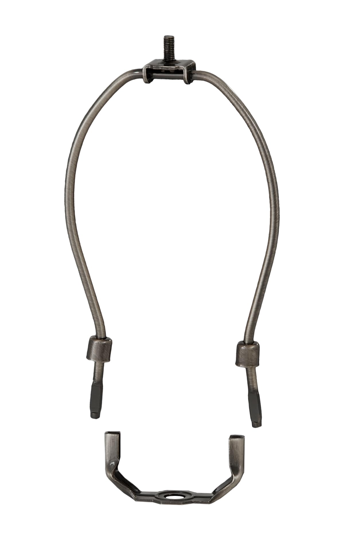 12 Inch Heavy Weight Antique Bronze Finish Lamp Harp With Harp Base, High Quality Harp With Protective Coating, 1/4-27M Threads (Standard Size For Finials) At Top And With Base To Slip 1/8 I.P. (3/8 Inch Diameter Pipe)