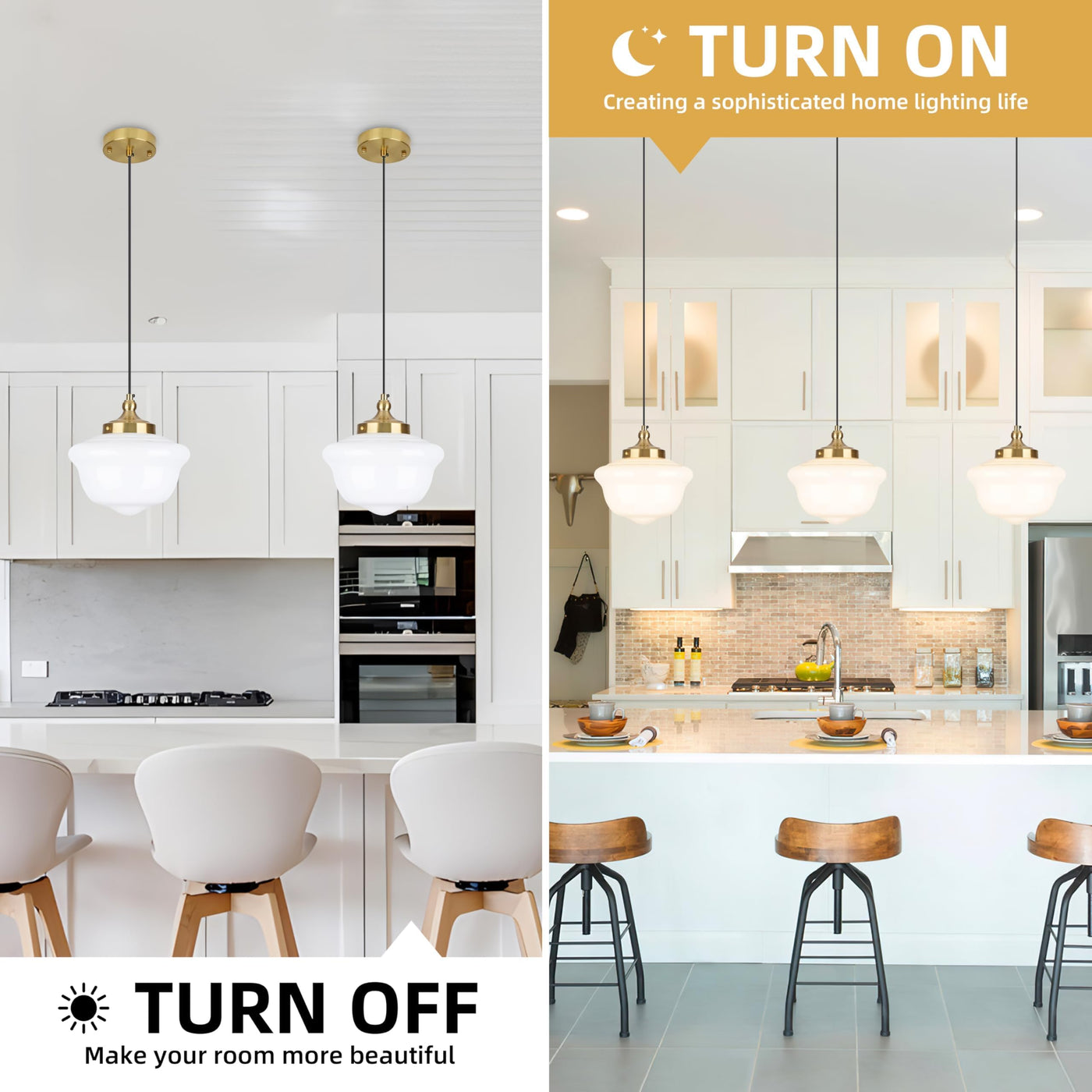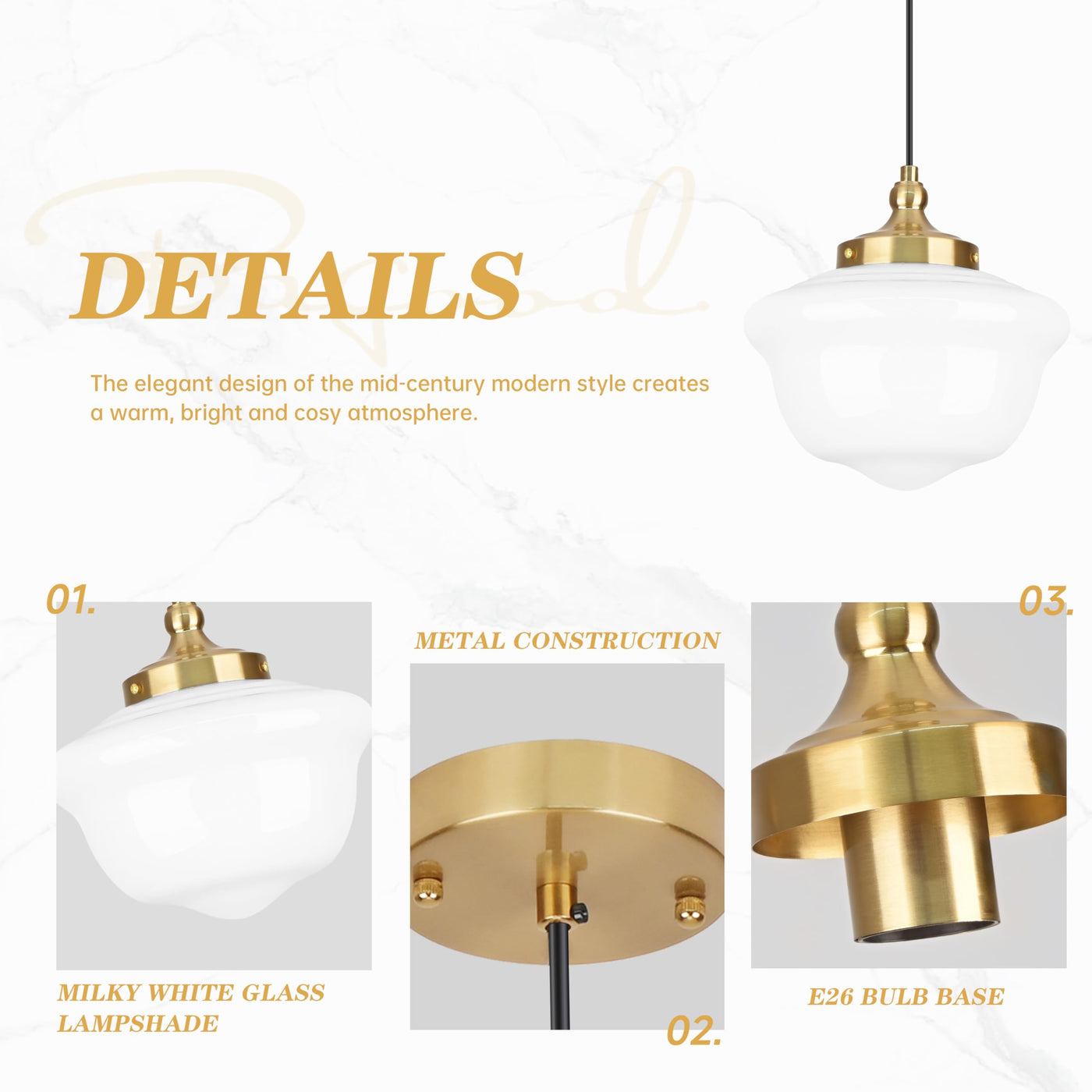 Bagood 10'' Milk Glass Pendant Light Gold Schoolhouse Light Fixture Schoolhouse Pendant Light Milk Glass Light Fixture Mid Centu