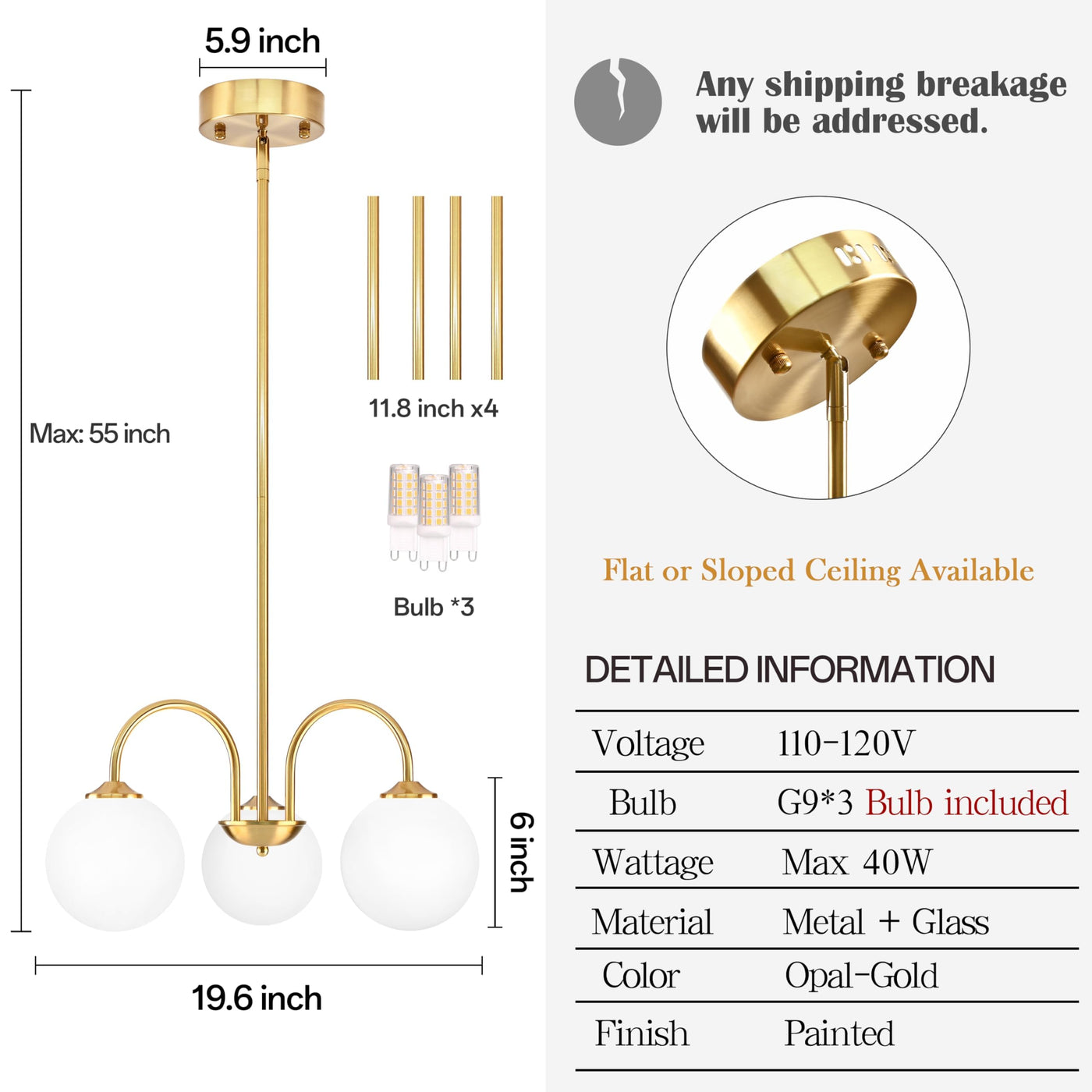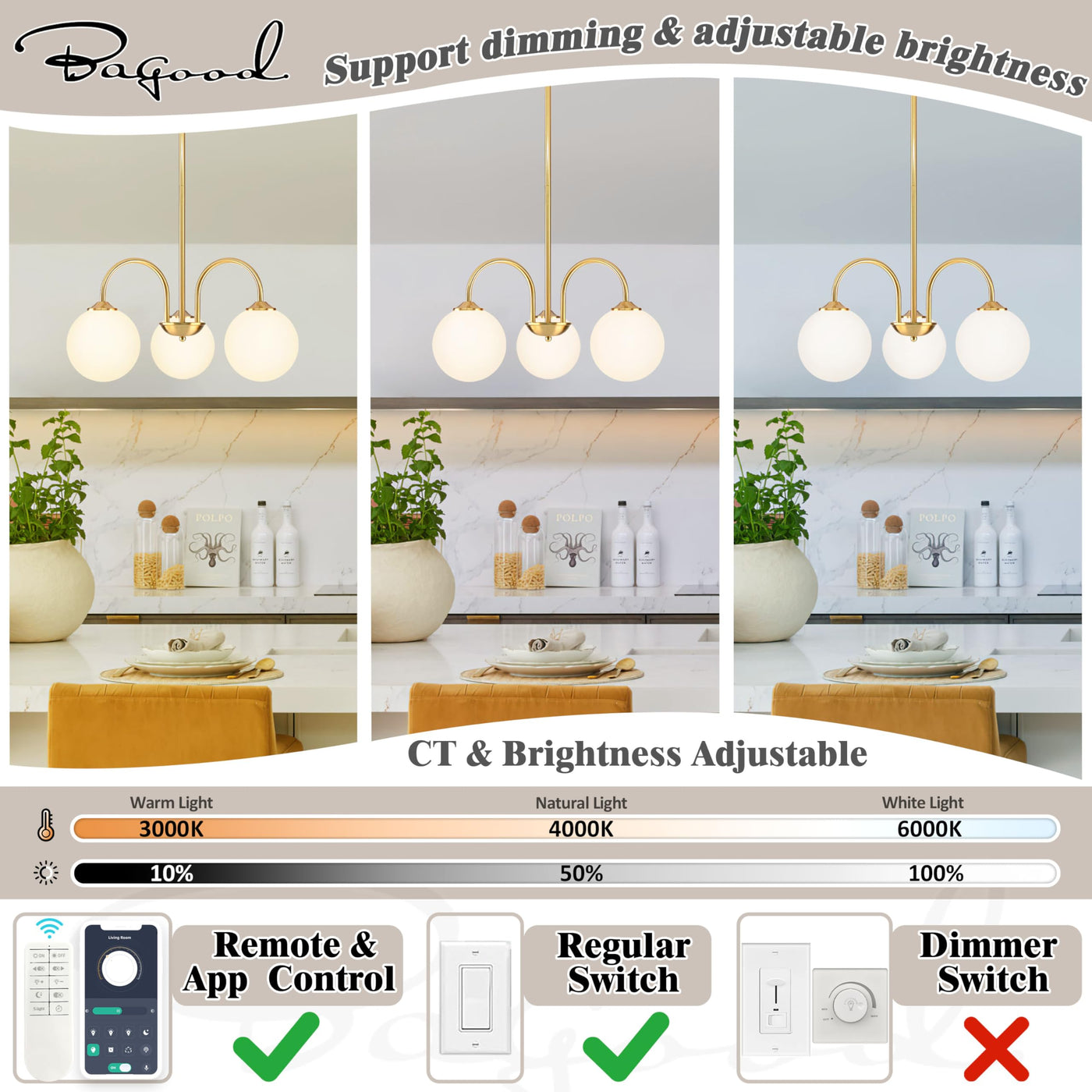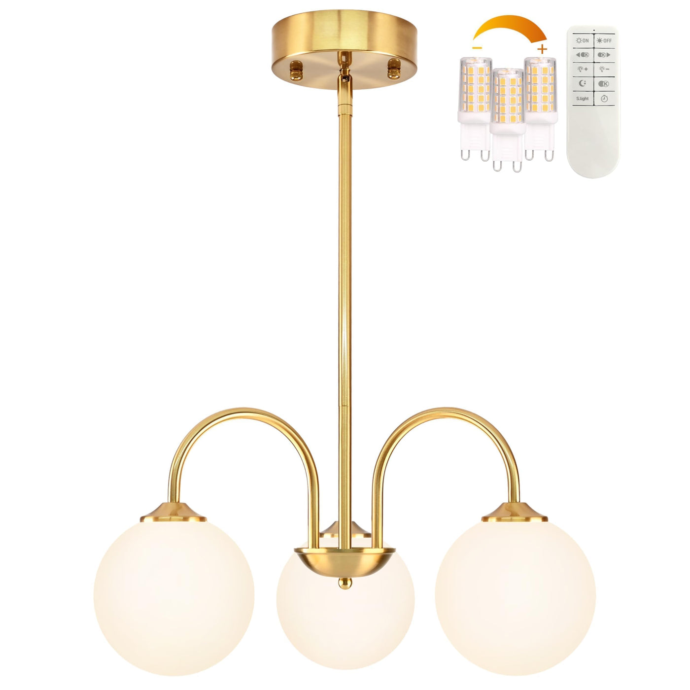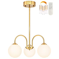 Bagood 3 Lights Globe Pendant Light Gold Sputnik Light Fixture 19.6 Modern Sputnik Chandelier With Milk Glass Globe Shade Dim