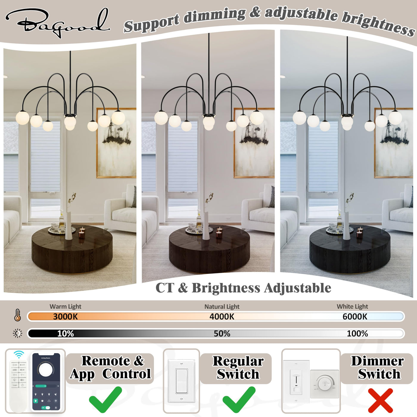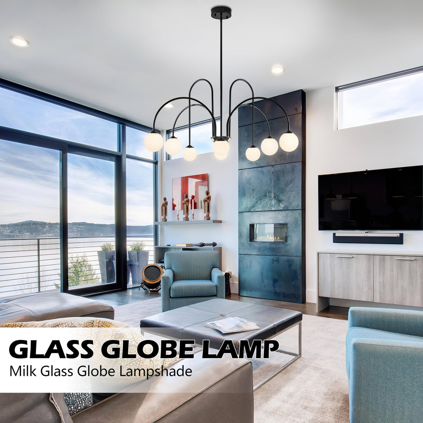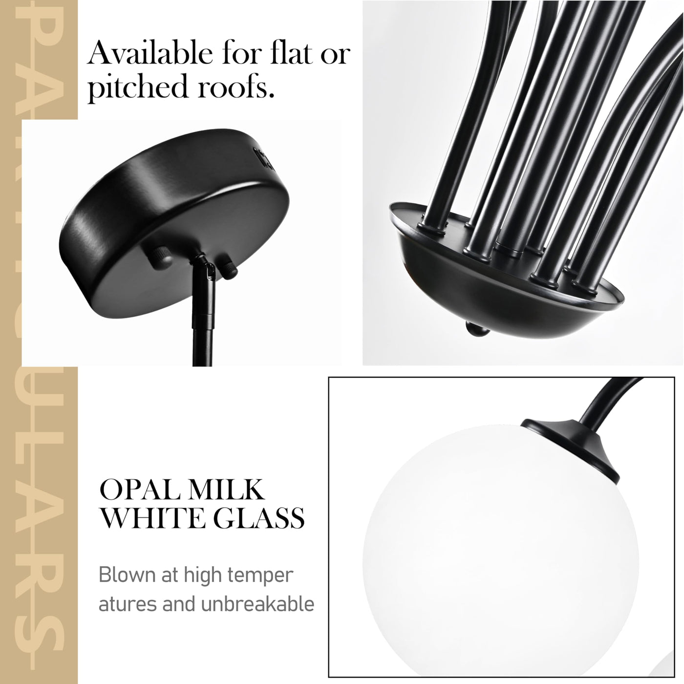 Bagood 8-Light Modern Sputnik Chandelier Mid Century Large Glass Black Sputnik Chandeliers Large Frosted Globe Chandelier Milk Glass Pendant Light Fixtures Semi Flush Mount Chandelier for Dining Room