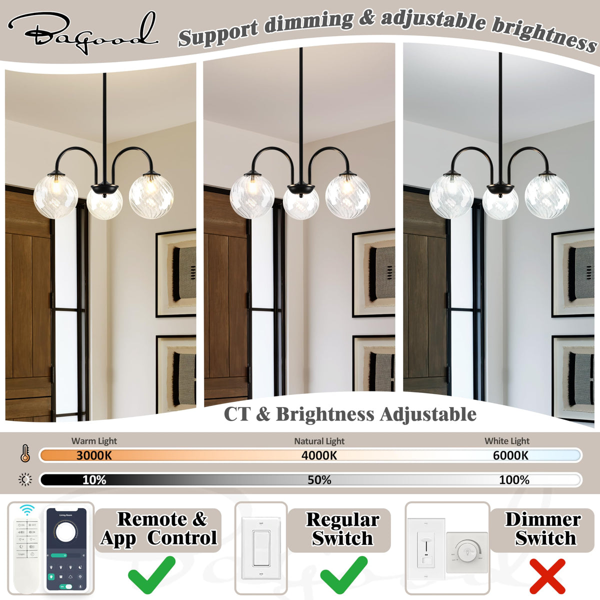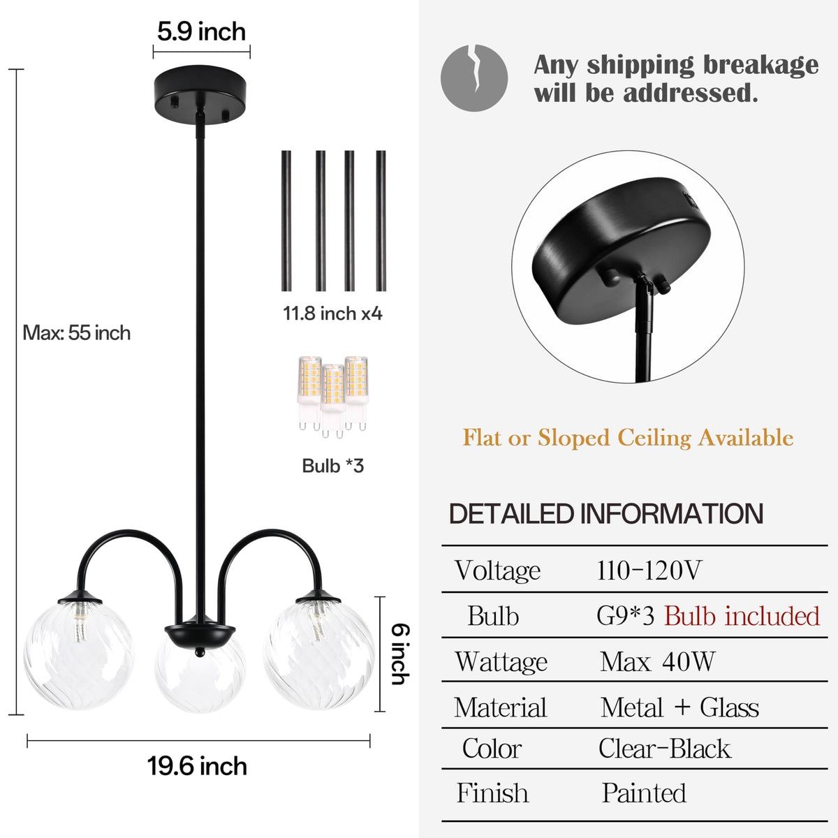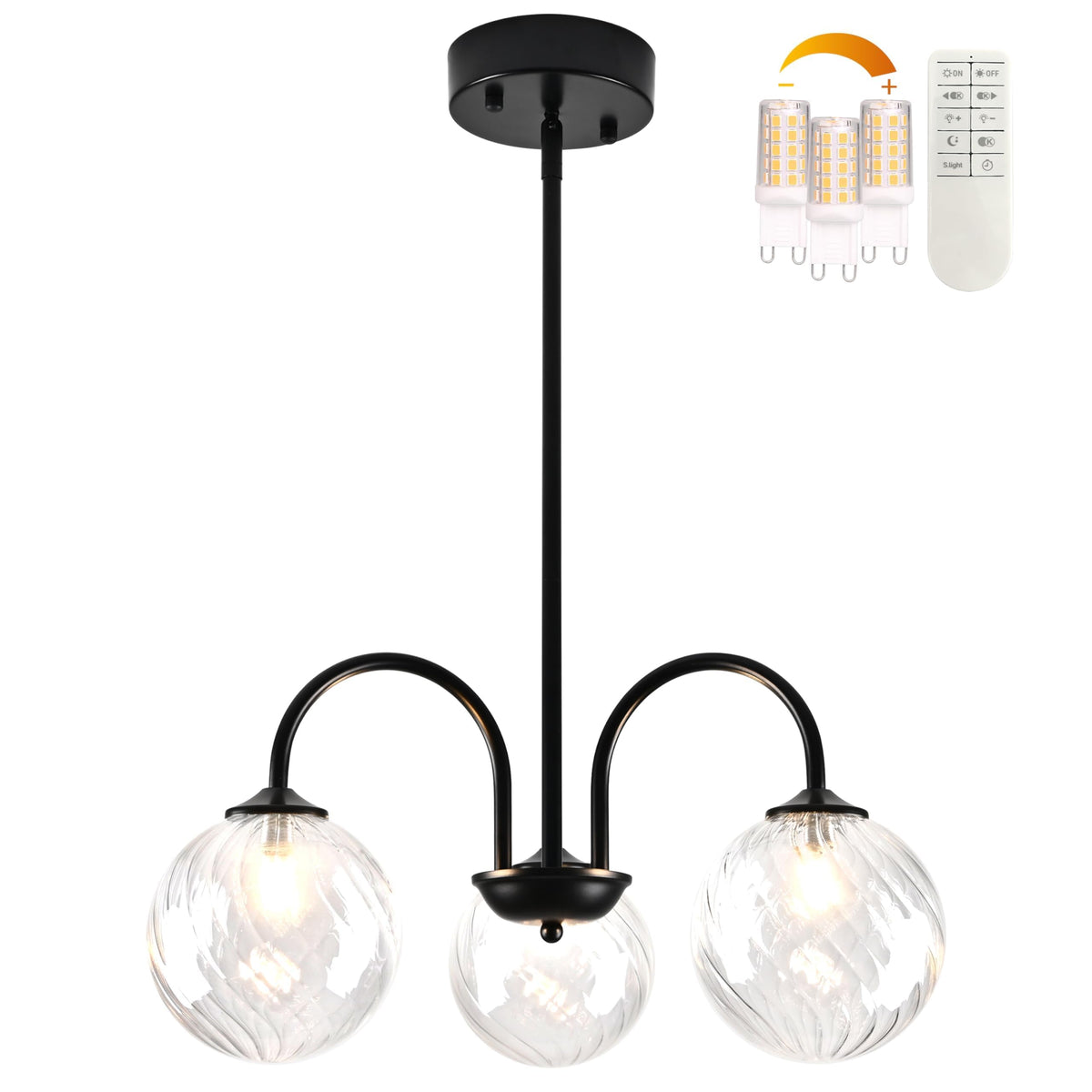 Bagood Black Sputnik Chandelier 3 Lights Globe Pendant Light Mid Century Pendant Light 19.6 Modern Sputnik Chandelier With Cl