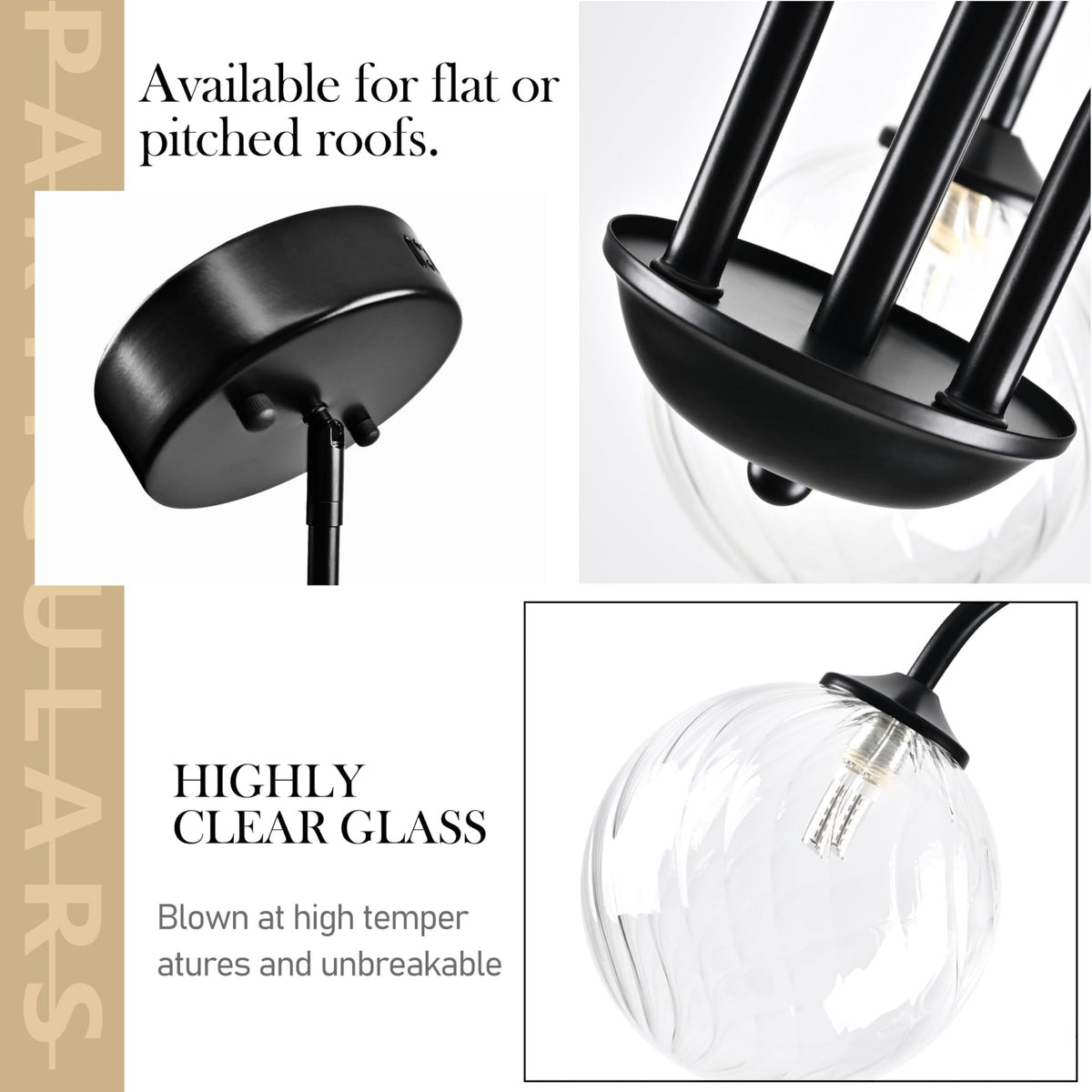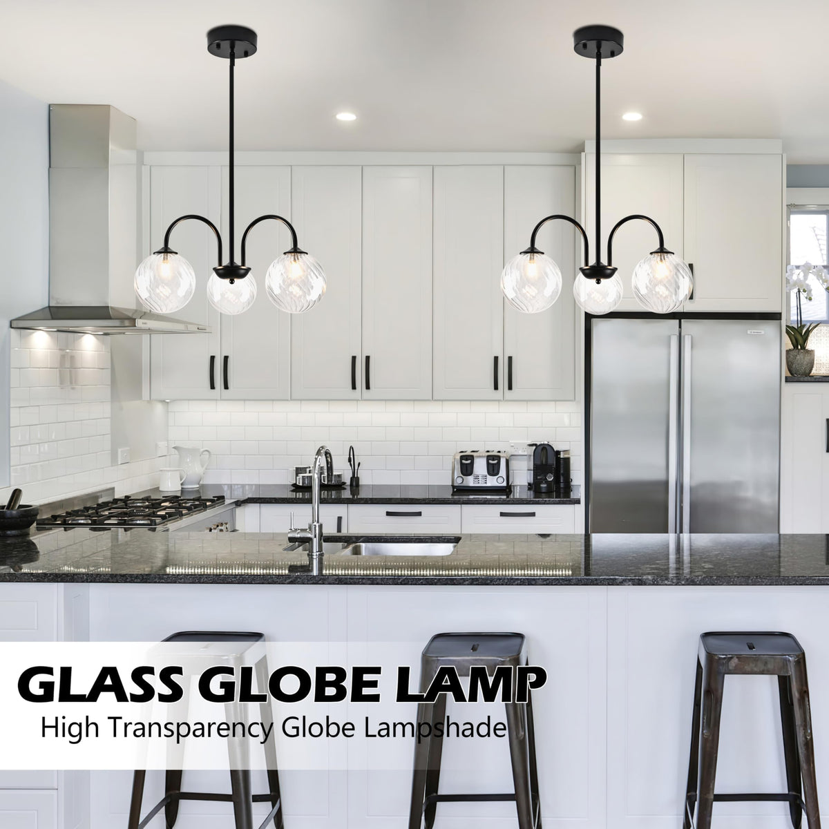 Bagood Modern Globe Pendant Lights Kitchen Island Mid Century Sputnik Chandelier Contemporary Chandeliers Black Finished with Clear Globe Glass Lampshade Sputnik Chandeliers for Dining Room