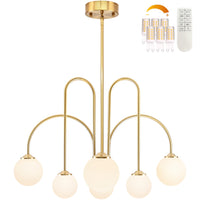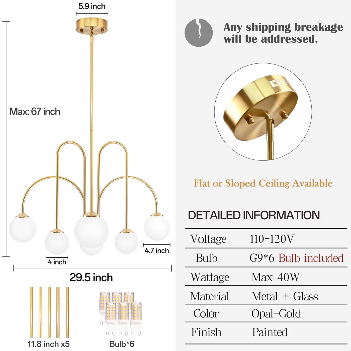 Bagood Gold Sputnik Chandeliers 6-Light Sputnik Light Fixture Mid Century Modern Chandelier With Milk Glass Globe Shade 29.5