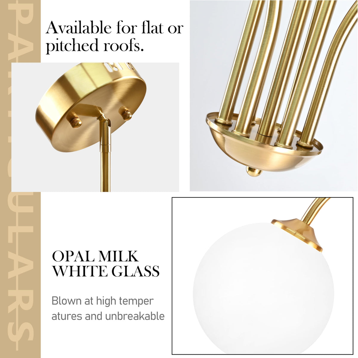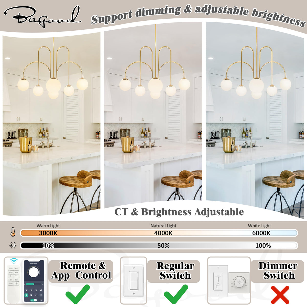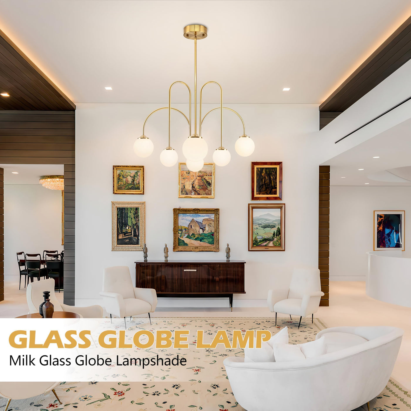 Bagood 6-Light Mid Century Large Glass Gold Sputnik Chandeliers Modern Sputnik Chandelier Large Frosted Globe Chandelier Milk Glass Pendant Light Fixtures Semi Flush Mount Chandelier For Dining Room