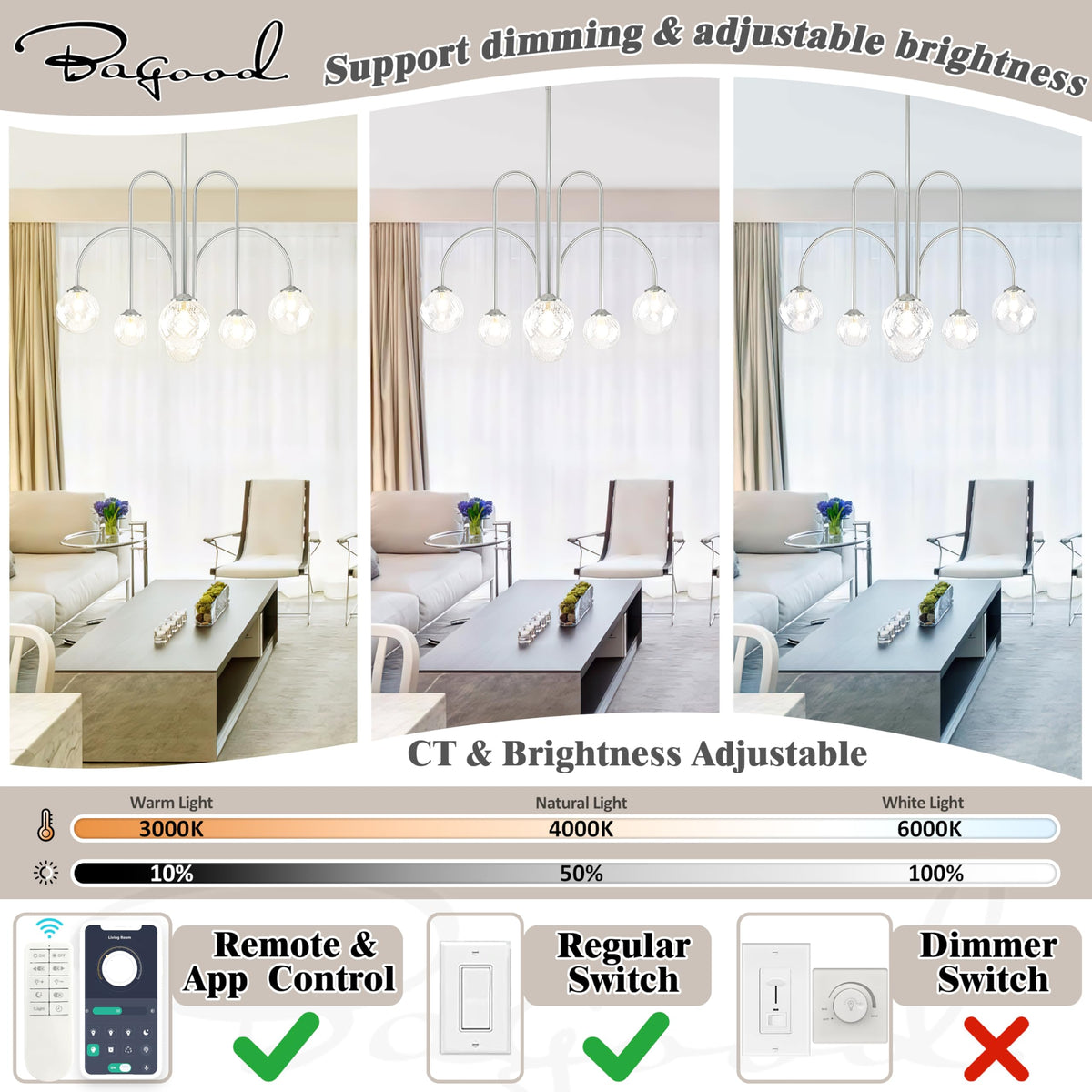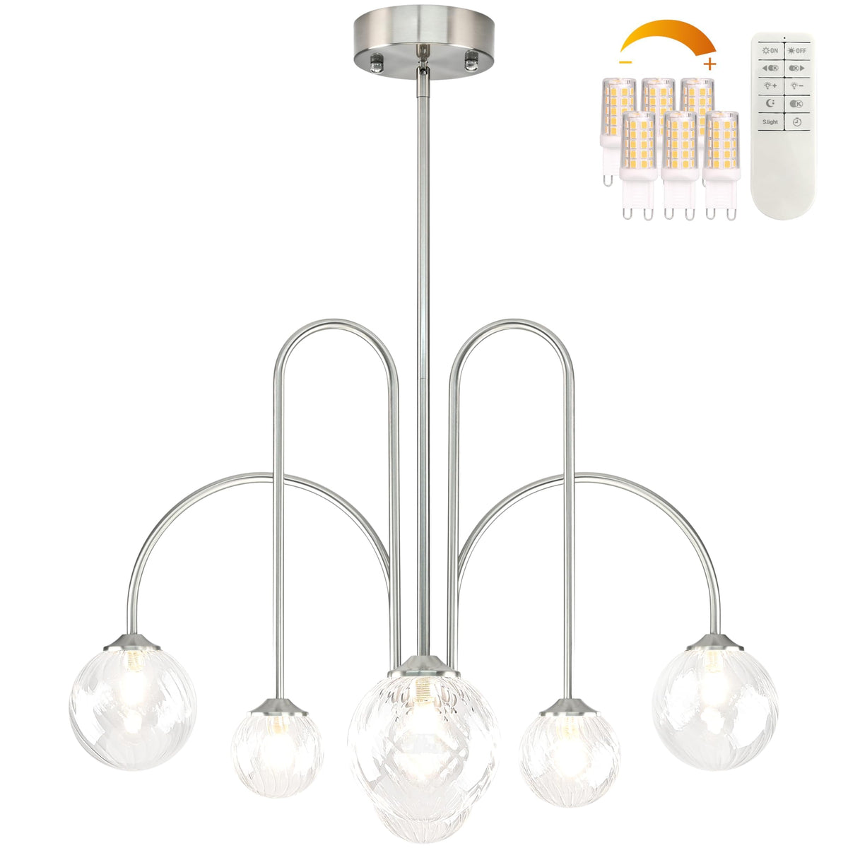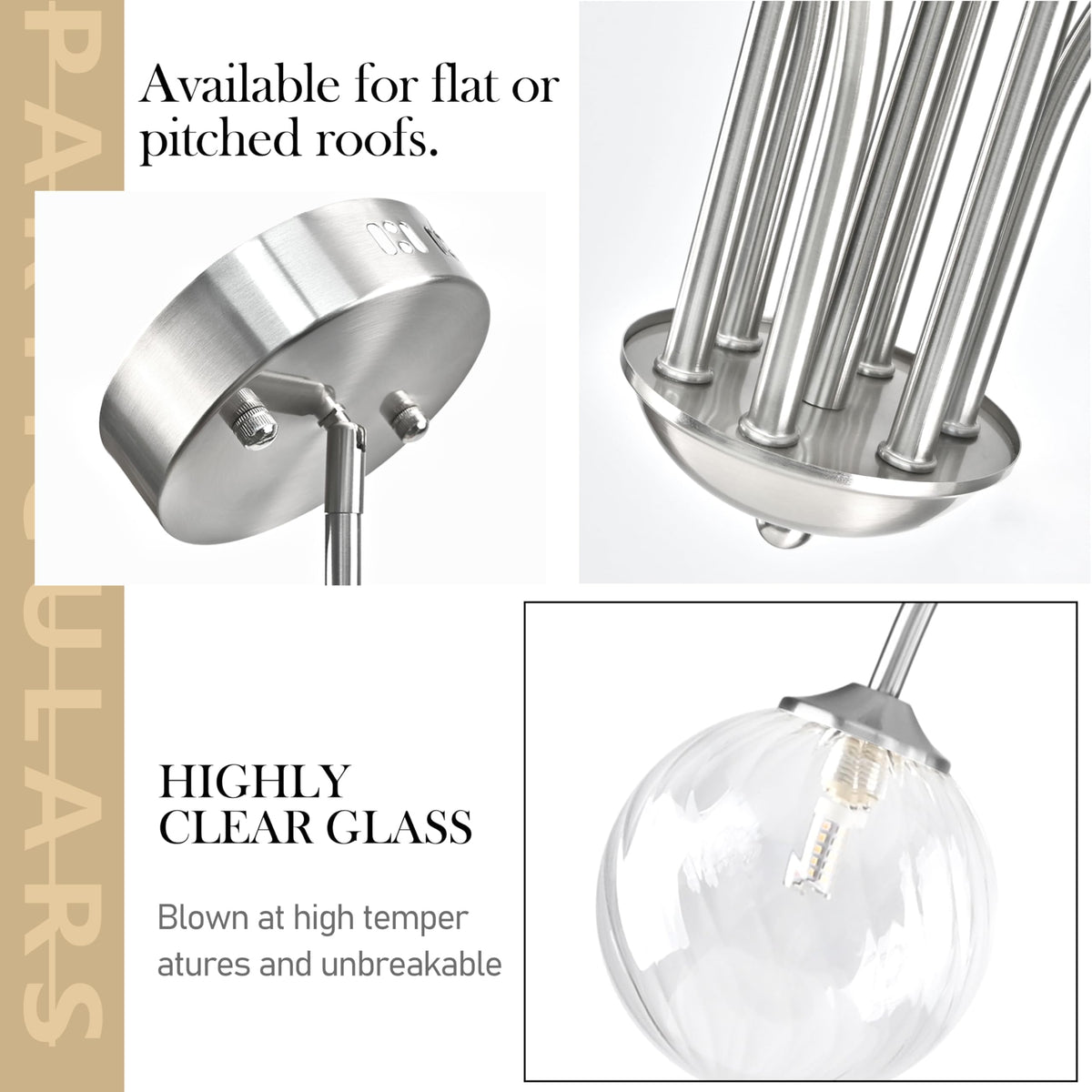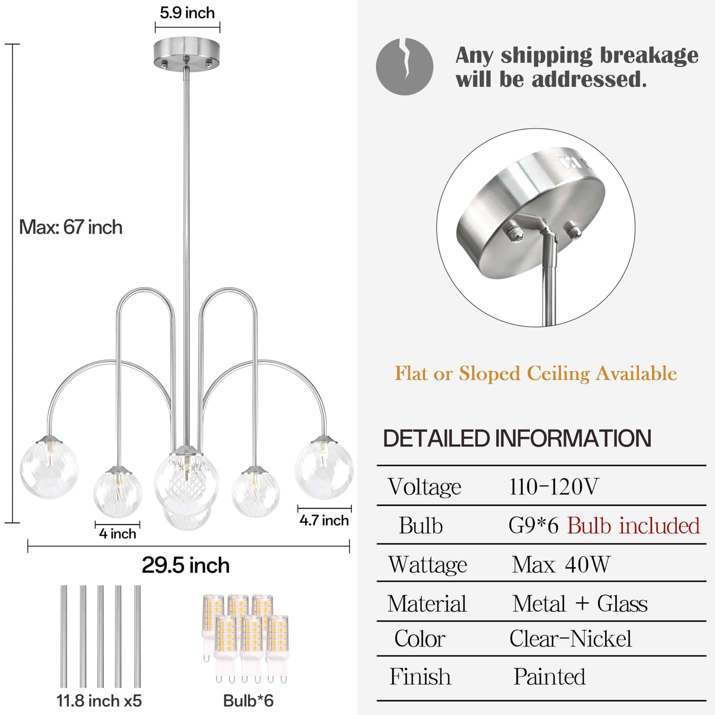 Bagood Nickel 6-Light Sputnik Light Fixture 29.5 Globe Modern Sputnik Chandelier Dimmable Chandelier With Clear Globe Glass M