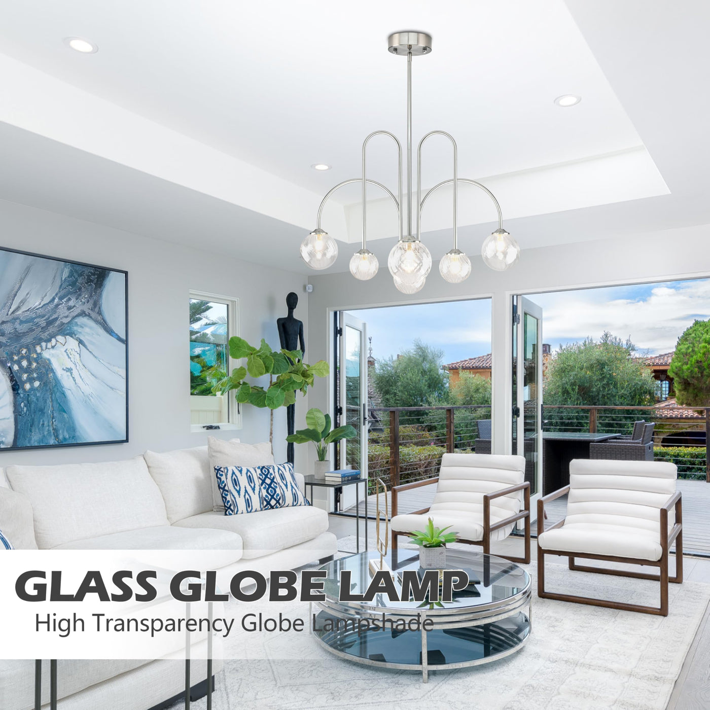 Bagood 6-Light Modern Globe Pendant Lights Mid Century Sputnik Chandelier Contemporary Chandeliers Nickel Finished with Clear Globe Glass Lampshade Sputnik Chandeliers for Dining Room