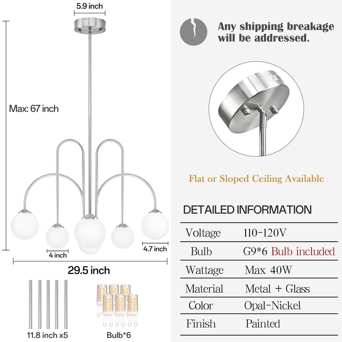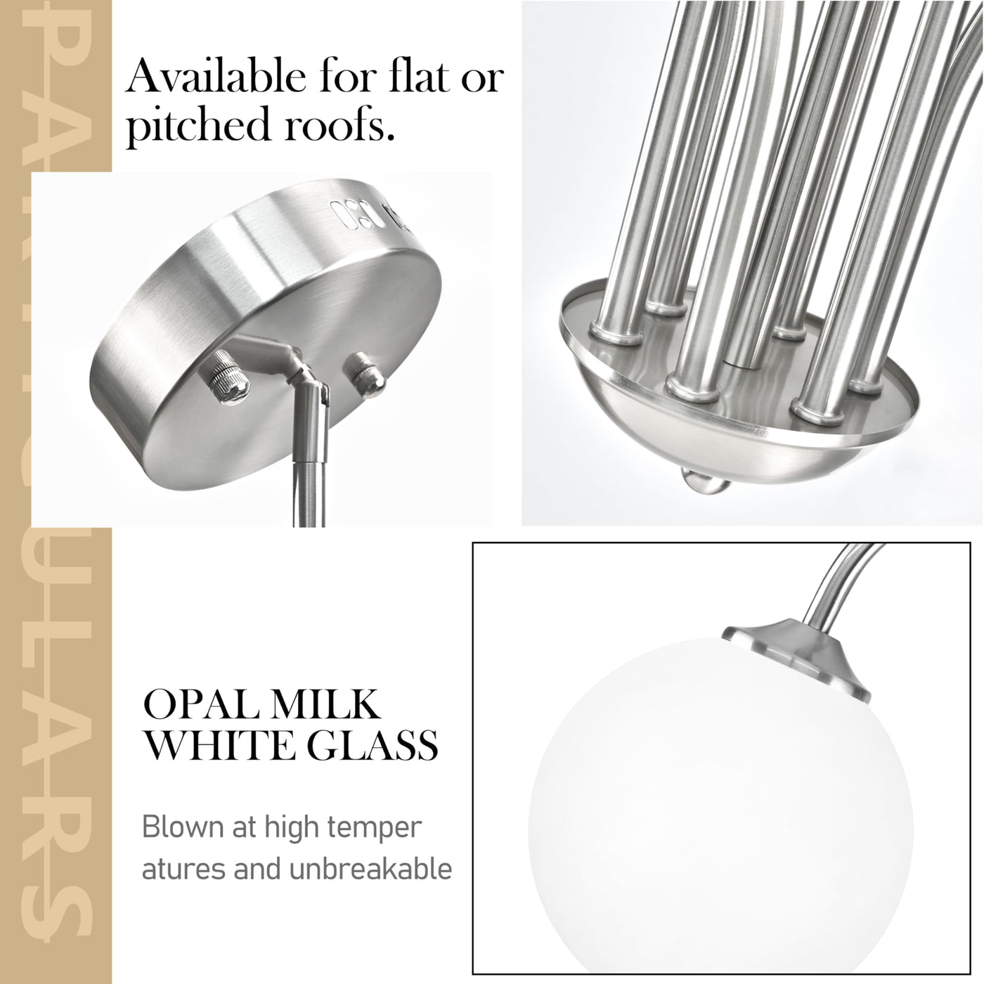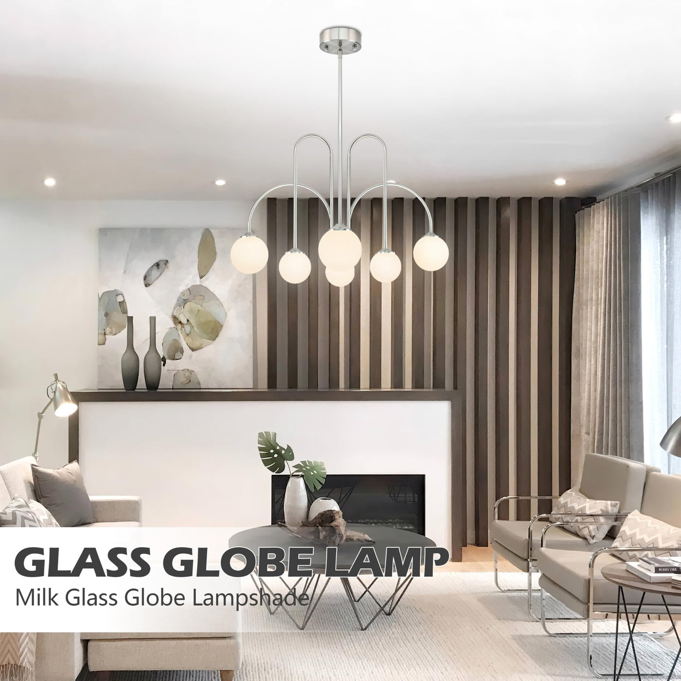 Bagood Nickel 6 Lights Globe Chandelier Light Fixture Modern Sputnik Chandelier Dimmable Chandeliers With White Globe Glass 29.5