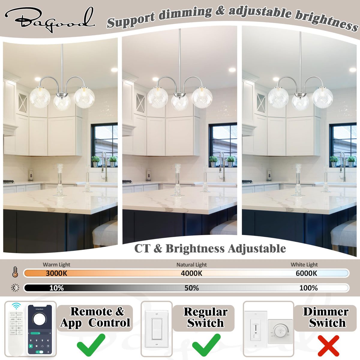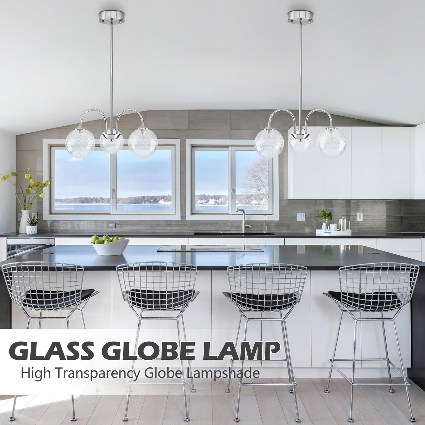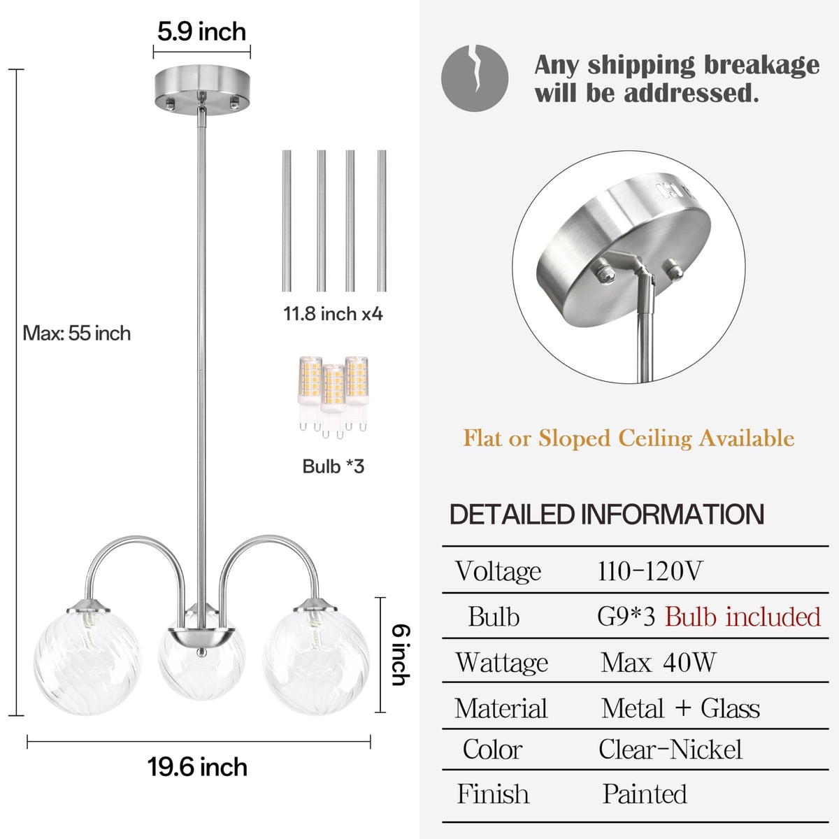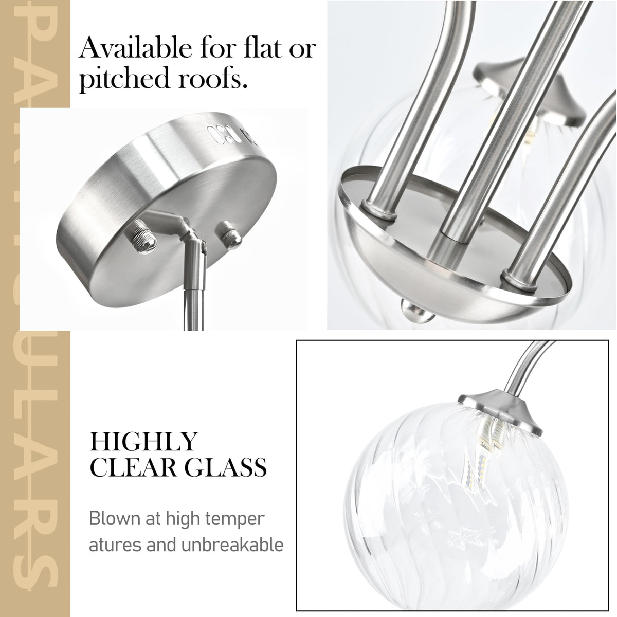 Bagood Nickel Globe Pendant Light 3 Lights Modern Sputnik Chandelier 19.6 Mid Century Modern Light Fixture With Clear Glass G
