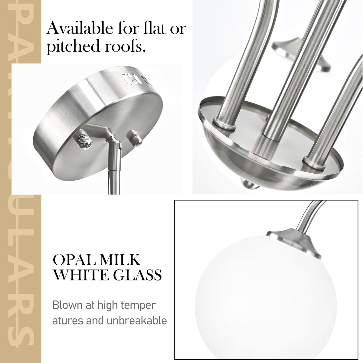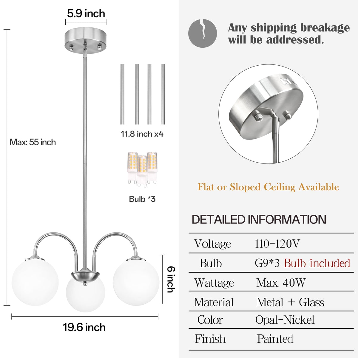Bagood Nickel Globe Pendant Light 3 Lights Modern Sputnik Chandelier 19.6 Mid Century Modern Light Fixture With Milk Glass Gl