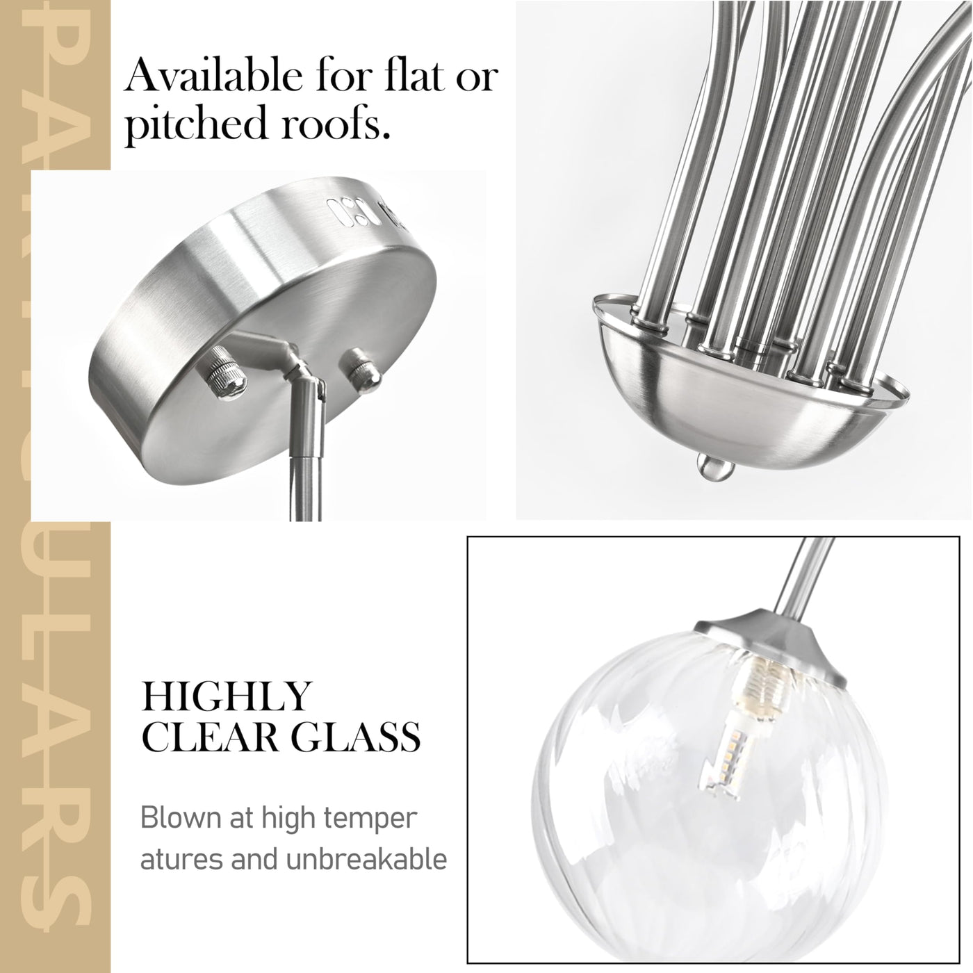 Bagood 8-Light Modern Globe Pendant Lights Mid Century Sputnik Chandelier Contemporary Chandeliers Nickel Finished with Clear Globe Glass Lampshade Sputnik Chandeliers for Dining Room